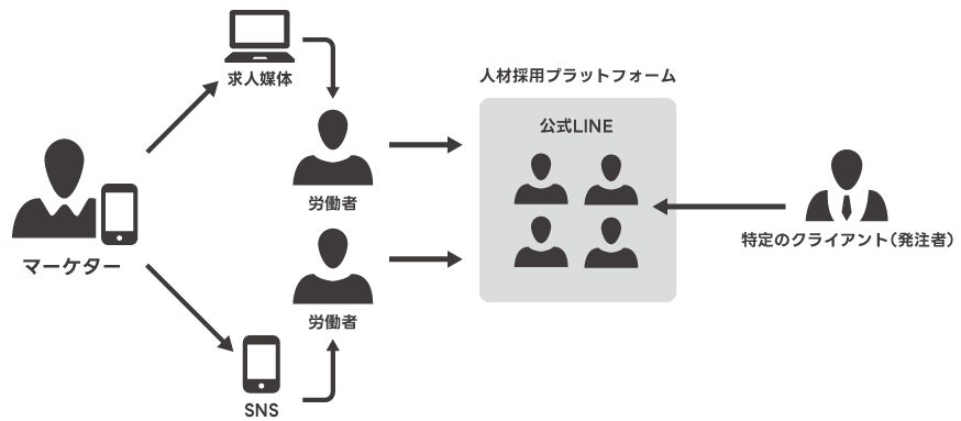 見込み求職者を自分たちで増やす必要があります。その際、求人媒体や人材マッチングサービス、SNSに加えて、LINE広告が有用です。採用活動にマーケティングの手法を用いて成果を最大化させます。
