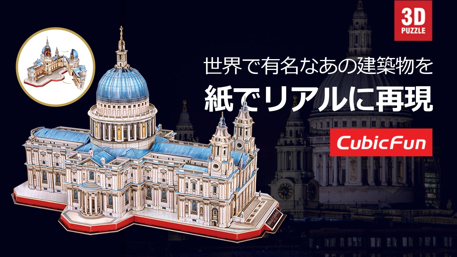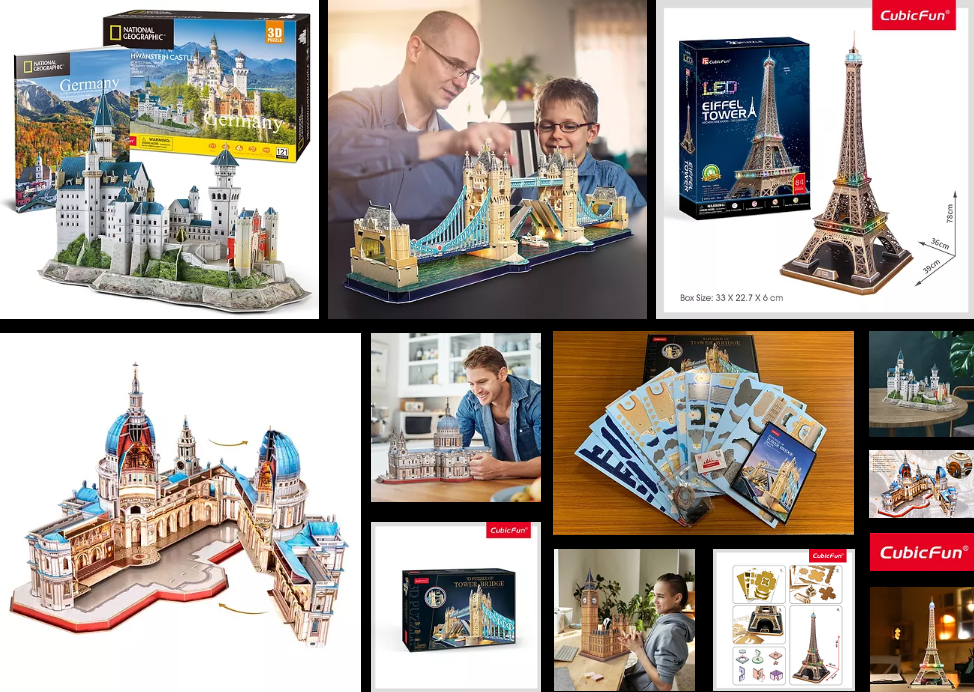 「CubicFun(キュービックファン)」は、世界の都市や世界遺産などの建築物、船舶をモデルとした3Dペーパークラフトパズルのおもちゃブランドです。イラスト通りに組み立てたら、本格ジオラマの完成です!