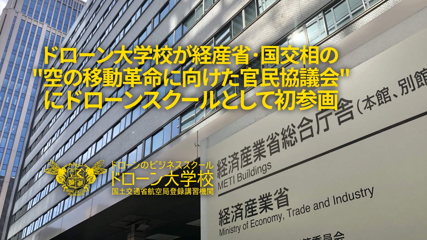 本年度、一般社団法人ドローン大学校が、国土交通省航空局登録講習機関(ドローンスクール)として唯一、"空の移動革命に向けた官民協議会"に構成員として参画した。