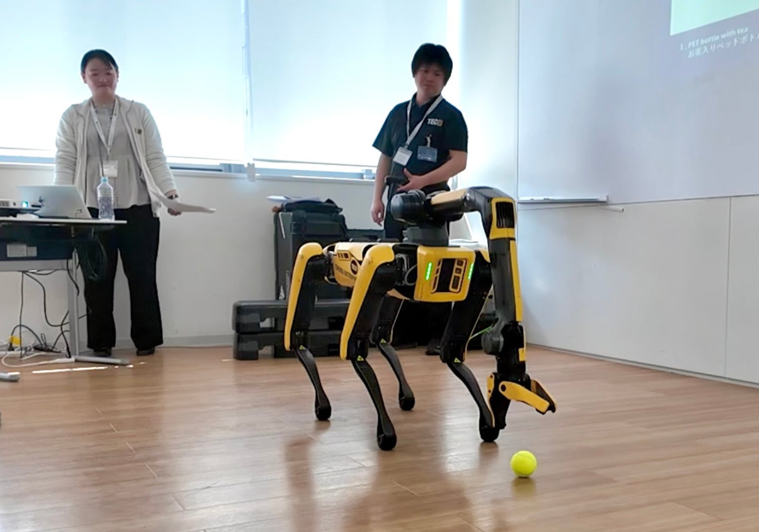 Boston Dynamics社の四足歩行ロボット「Spot」が登場し、参加した子どもたちはロボットのスムーズな動きと共に災害現場での活躍などを動画とプレゼンテーションで詳しく伺いました。