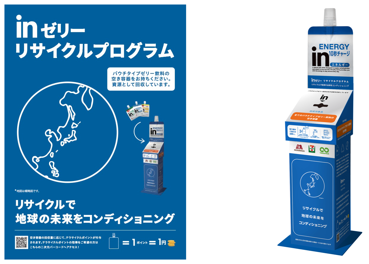 横浜市内のセブン‐イレブンで、森永製菓がパウチタイプゼリー飲料の空き容器回収リサイクル実証実験開始