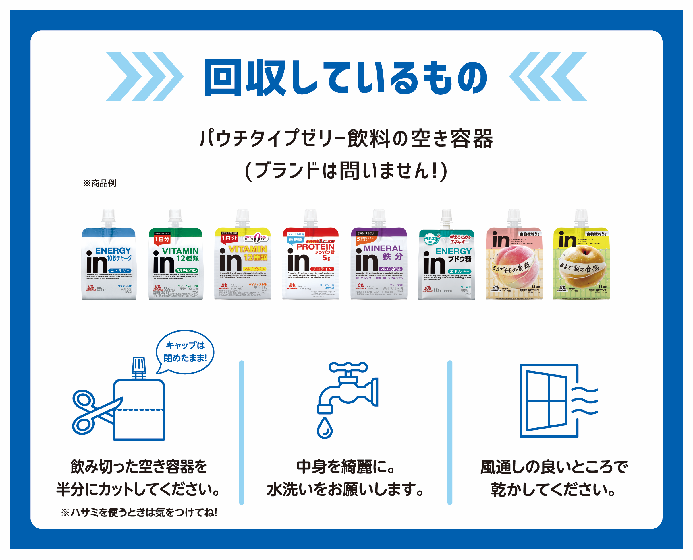 (※パウチタイプゼリー飲料の空き容器であれば、全メーカーの商品が回収対象)