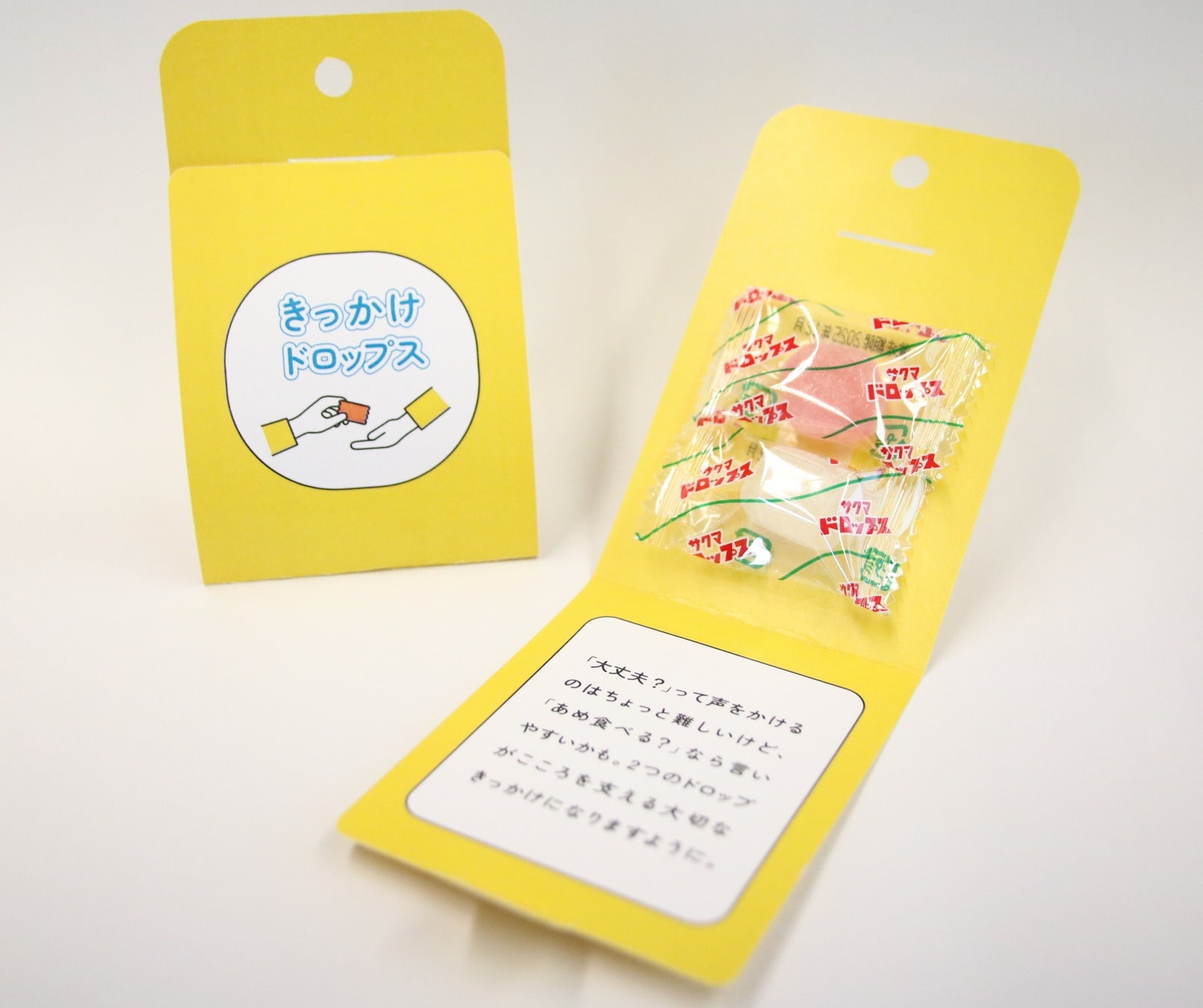 この講座の中心となるのが、当法人オリジナルプロダクトの「きっかけドロップス」です。このプロダクトには「2つのドロップがこころを支える大切なきっかけになりますように」という願いが込められています。