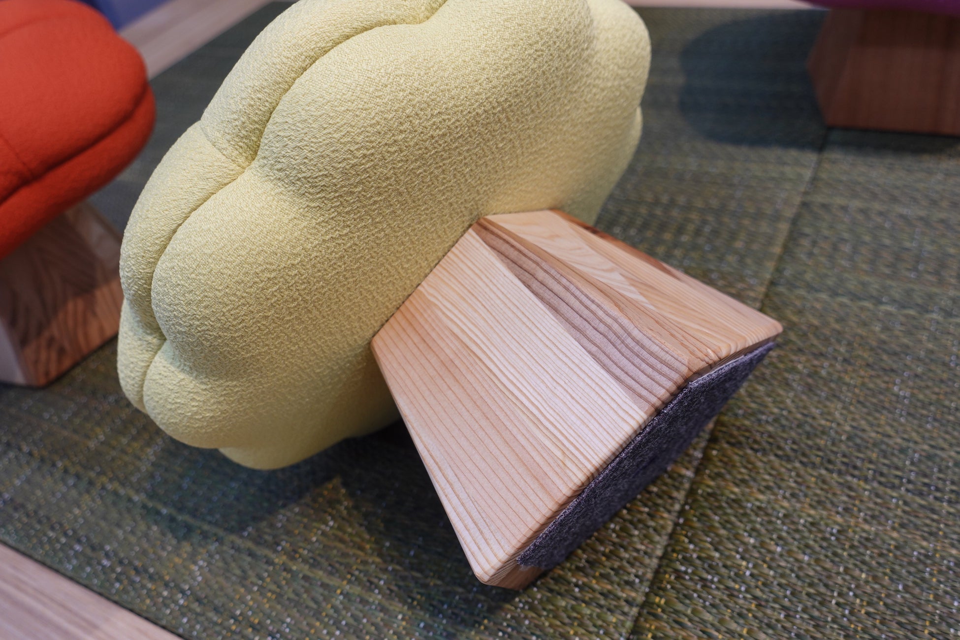 「正座MONACA」の座面には、和の風情を感じる日本の伝統的な花模様をあしらっており、和室に置くだけでお部屋を彩ります。また、木部にはセンダン、杉、ヒノキといった国産材を使用し、環境への配慮もされています。特にセンダン材は、早生広葉樹として成長が早く、持続可能な林業の一環として使用されています。