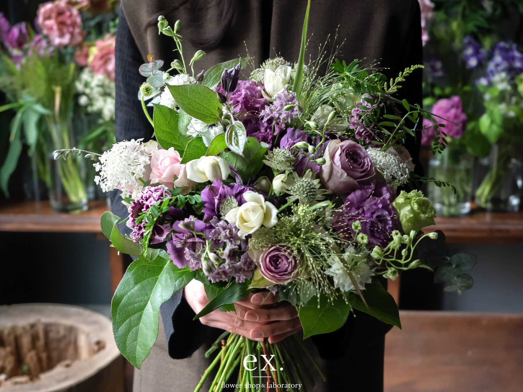 ex. flower shop & laboratory(イクス フラワーショップ&ラボラトリー)が提案する母の日ギフトは、洗練された草花の色や形、配置、向き、花の個性を大切にフローリストが束ねます。 全ての花を主役にみせるギフトを、 多くのオーダーがある母の日でもフローリスト一人一人が拘りを持ち、花屋のあたりまえを見つめ直し、選ぶ贈り手の喜びと受け取った瞬間の感動をお届けします。