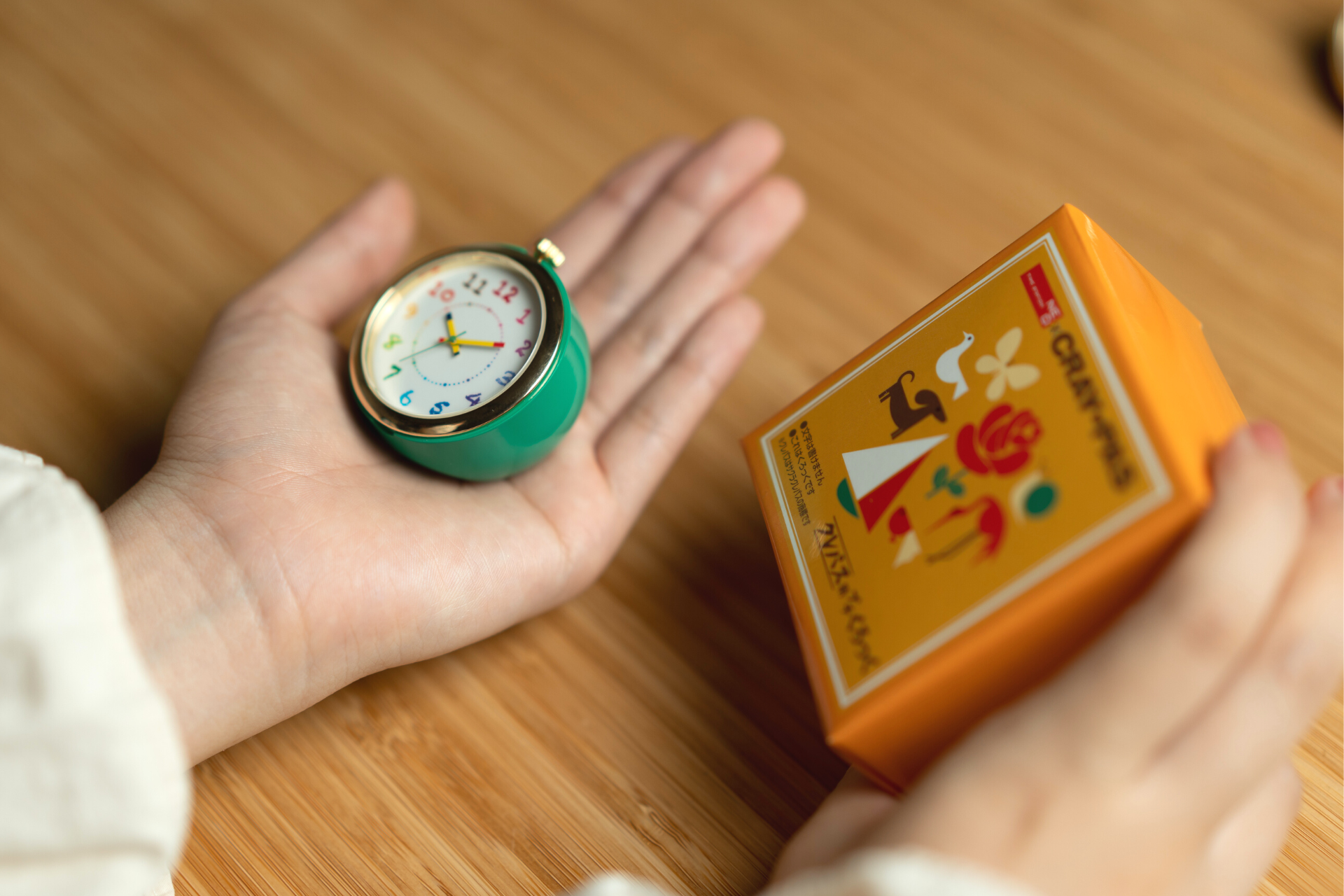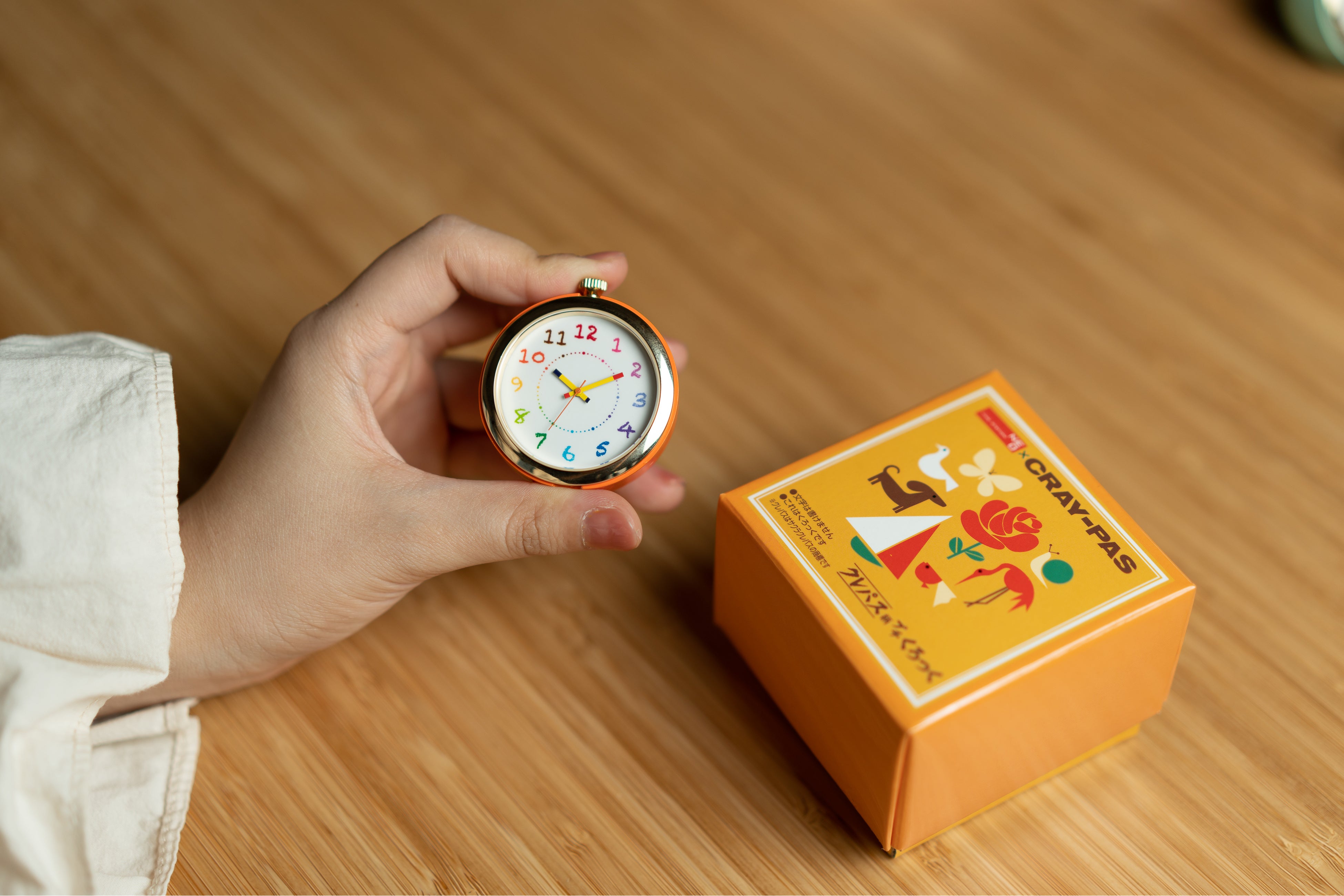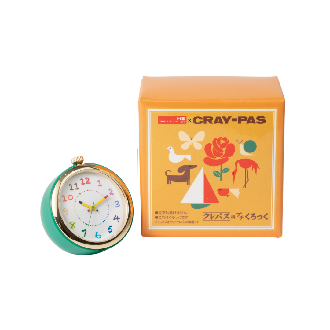 手の平サイズの小さな置き時計"クレパス柄プチくろっく"を2022年11月23日より文具女子博2022にて先行発売します。