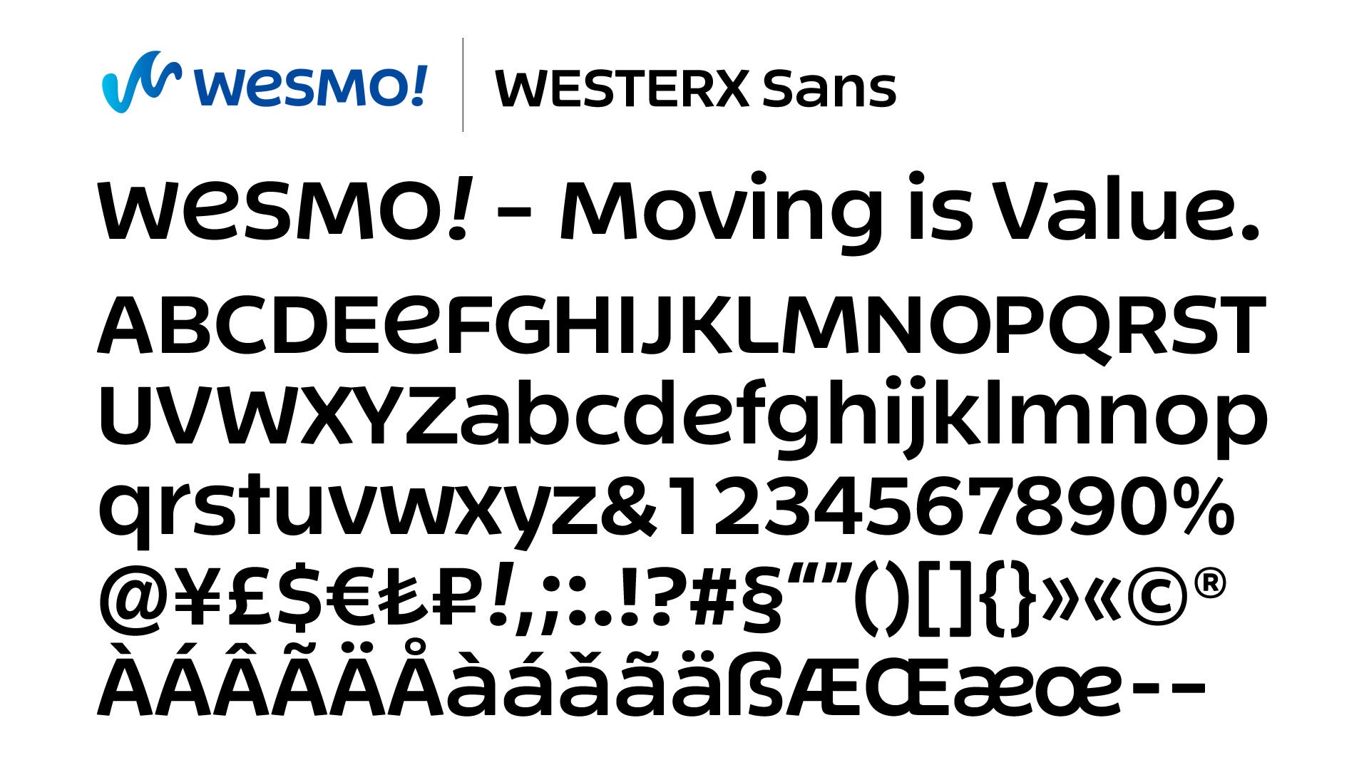 欧文書体WESTERX Sans(ウェスターエックス・サンズ)は、Wesmo!のロゴタイプ、アプリ、広告などで幅広く使用するために開発されました。