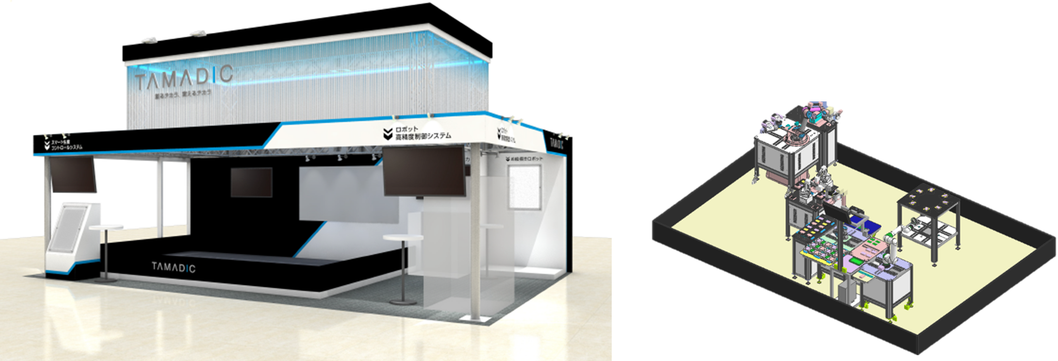 本イベントでは、協働ロボットとAGV(AMR)による組み換え可能な生産ラインに加え、物流工程まで連携可能な管理システムを搭載したフレキシブル&スマート生産ラインの提案、そして3D点群データを活用したロボット高精度位置補正システムなど、弊社保有のロボット制御技術と設備設計力を盛り込んだ4種類のソリューションおよび要素技術展示を行います。