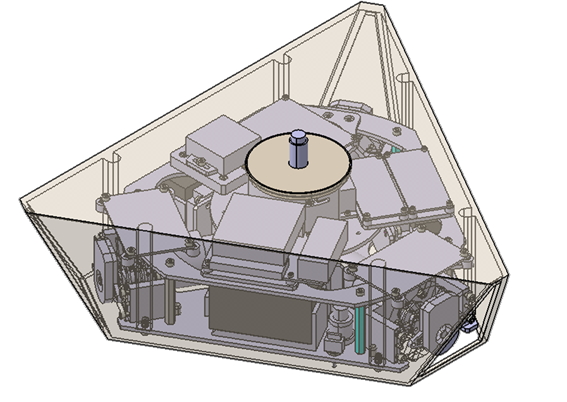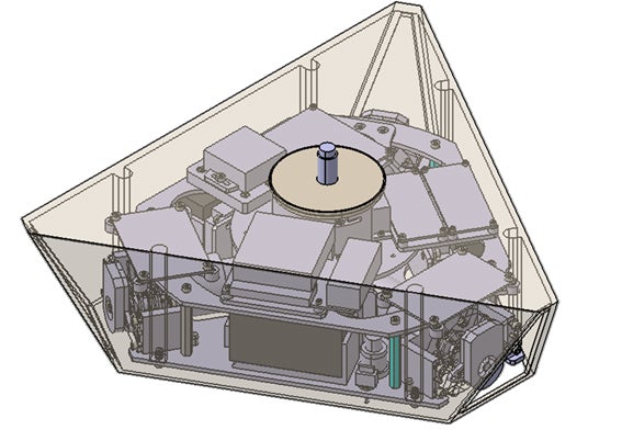 加工・組立などの直接生産プロセスのみならず、その前後工程(工場建設、生産維持管理)の課題解決に着目し、保全作業員の支援、間接部門支援なども視野に入れた自律移動型サービスロボット(自社開発中)の要素技術を展示。 3輪オムニ駆動走行による自由曲線を描画することが可能で、設備配置のケガキや設備保全のシーンにおける活用を想定。