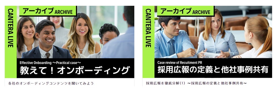 CANTERAアカデミーで学び合う会員同士は、CANTERAというひとつのコミュニティに属するため、企業間の垣根を越えて、横のつながりを持てます。業界を超えて、HRパーソンがつながることで、1社ごとにおける人事の水準を高め、より効果的な学びの実現を可能としています。定期開催されているライブイベントやリアルイベントなどを通じ、他社人事とカジュアルに議論し合うなかで、新たな気付きを得て頂けるようにしています。