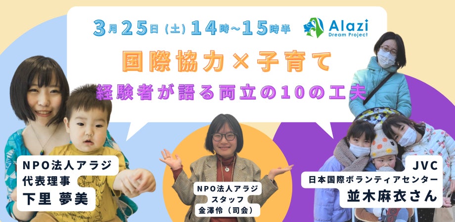国際協力と子育てを両立するコツとは?~経験者が10の工夫を語る、オンラインイベントを開催~(3月25日 14時 オンライン開催)