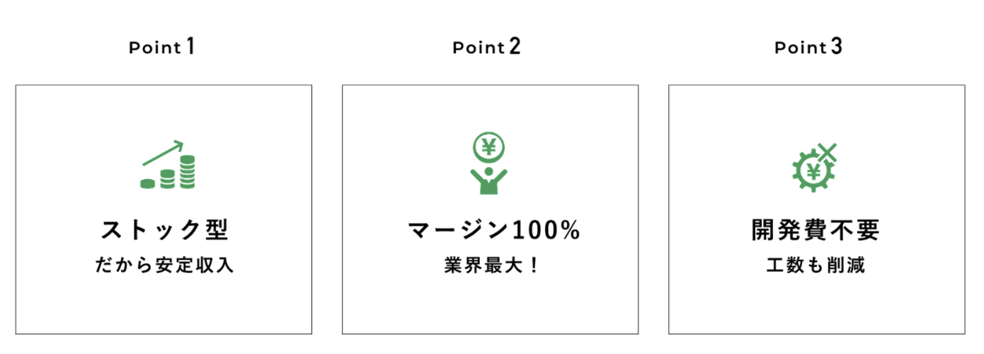 applimo(アプリモ)の代理店制度は高いマージン率と契約の継続率が特徴のストック型ビジネスモデルです。