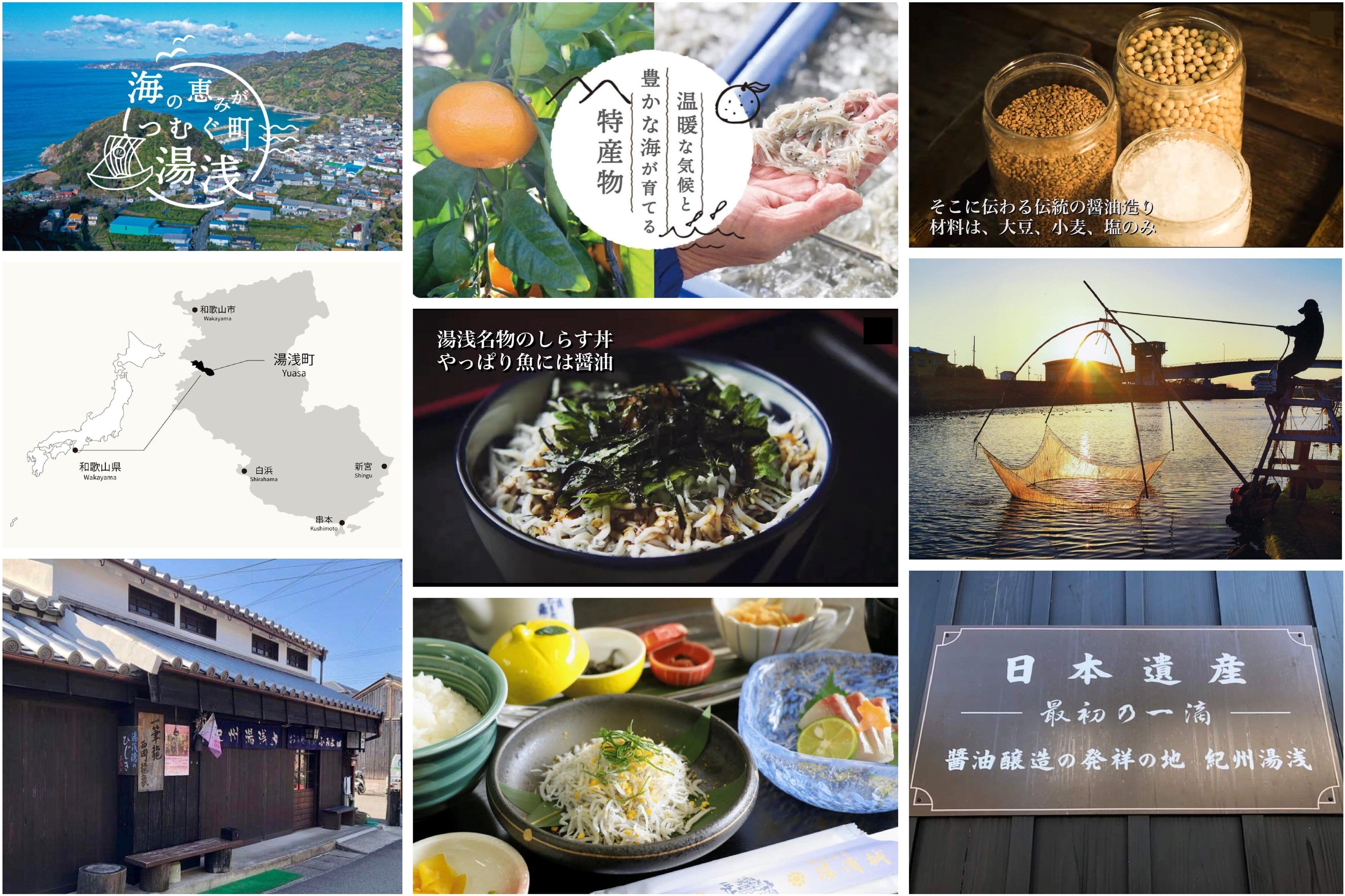 和歌山県の中部西岸に位置する港町、湯浅町。水陸交通の要衝として栄えた町です。醤油蔵が建ち並び、今なお歴史情緒あふれる風情を湛えています。醤油醸造発祥の地としてのストーリーは「最初の一滴」として平成29年(2017年)に日本遺産にも認定されています。アジやサバ、しらすといった豊富な海の幸も豊富で、江戸時代には紀州一と称えられていたほどです。海産物だけでなく、潮風が育む柑橘の味わい、そして醤油の伝来やその輸送に至るまで、今も海の恵みが息づく湯浅町。その恵みから生まれた自然や歴史を体感しながら、特別な車泊体験ができる地域です。ワーケーションの聖地・南紀白浜まで車で約1時間のアクセスです。