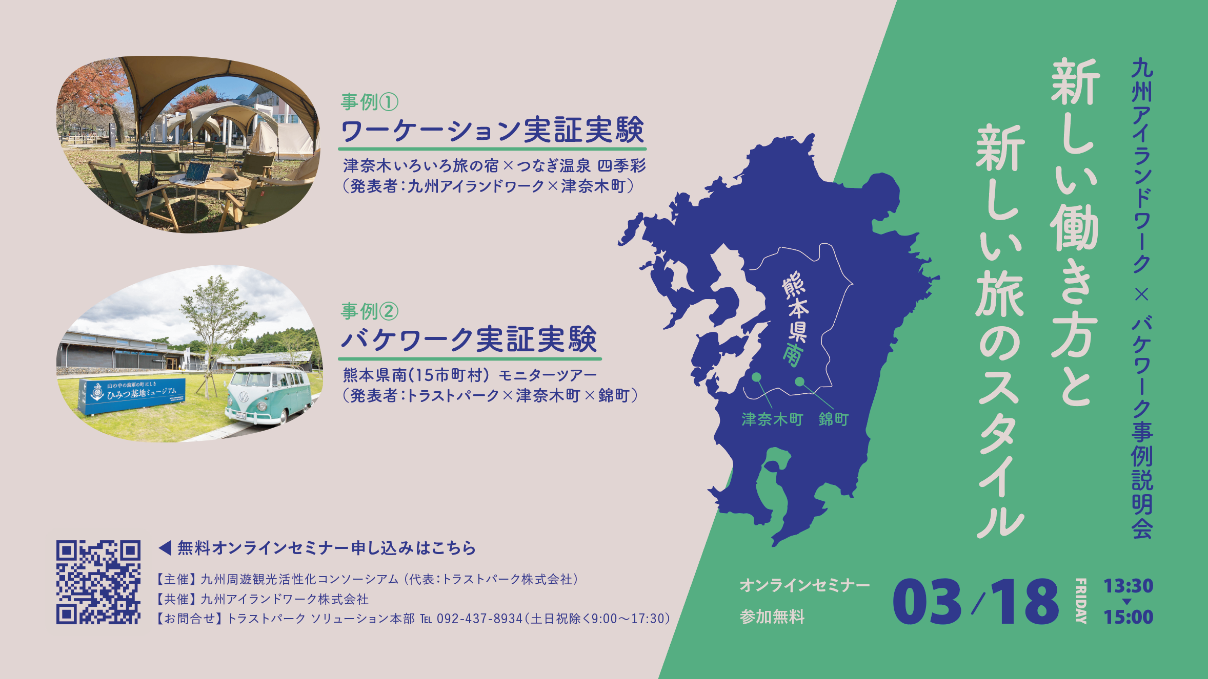 【共催ウェビナー】新しい働き方と新しい旅のスタイル!九州アイランドワーク×バケワーク事例説明会