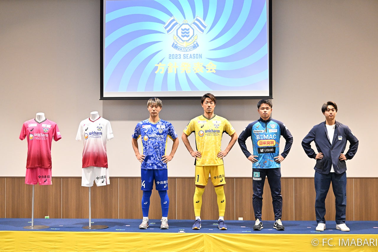 FC今治が、2023シーズンのスローガンやトップチームの新体制や2023シーズンのユニフォームや移動着などを発表。新加入選手10名を加え、J2昇格に向けて突き進んでいきます!