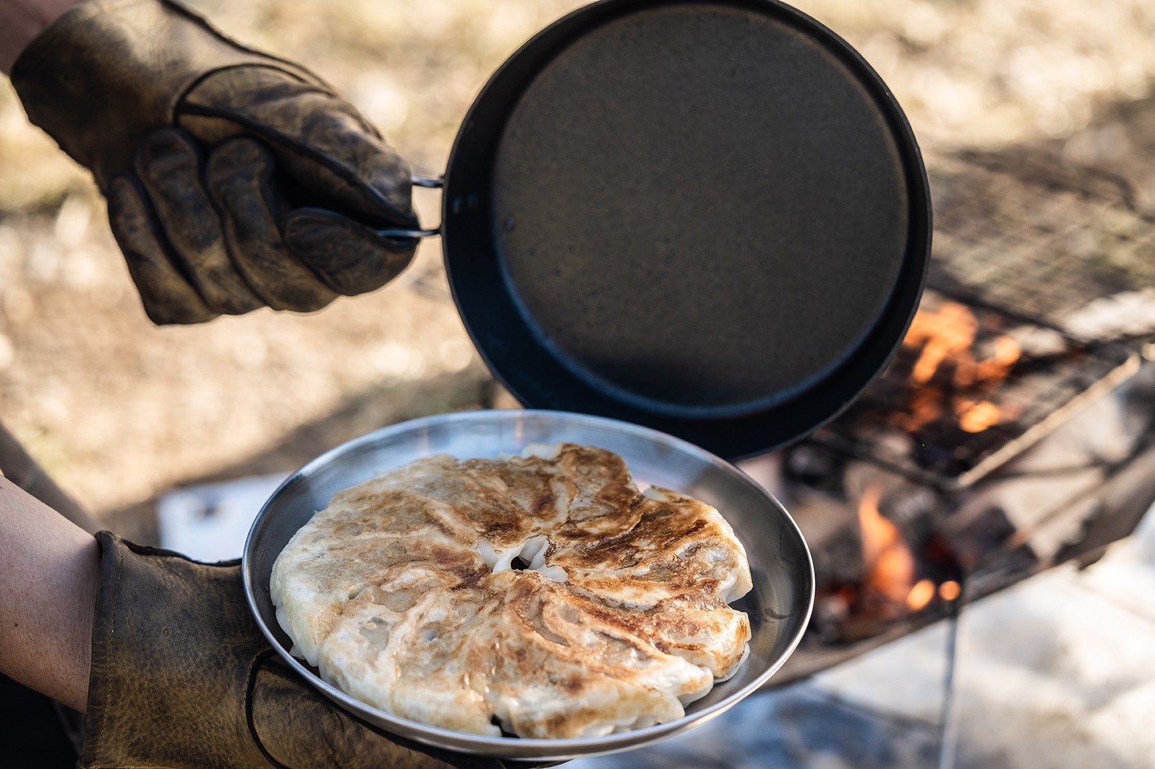 サイズは2パターンで、一回り小さい「ジュニア」はスタッキングも可能。折り畳み式の取手は紛失する心配もなく、収納や持ち運びもコンパクトに。まさにキャンパーの悩みを解決する、至れり尽せりの最強フライパンをぜひ体感してください。