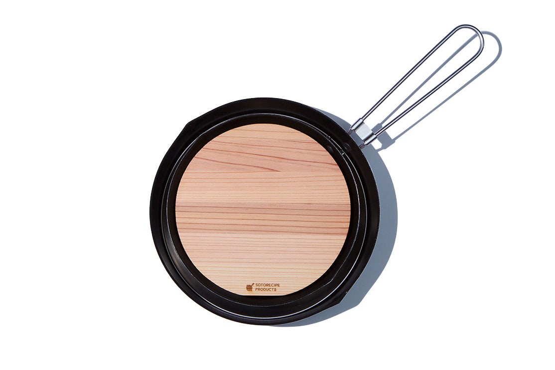 素材は、北陸の杉の端材をリメイクし、サスティナブルで優しく温かみのある肌触りとデザイン性を実現。ソトレシピプロダクツのベストセラーアイテム“シェラどんぶり”の「蓋」にもなり、合わせて使うことで炊飯や蒸し料理など調理のバリエーションが一気に広がります。「鍋敷き」や「お皿」の代わりにもなる万能さは、キャンプや家だけにとどまらず、登山や釣りなど、アウトドアアクティビティ全般で重宝すること間違いなし。