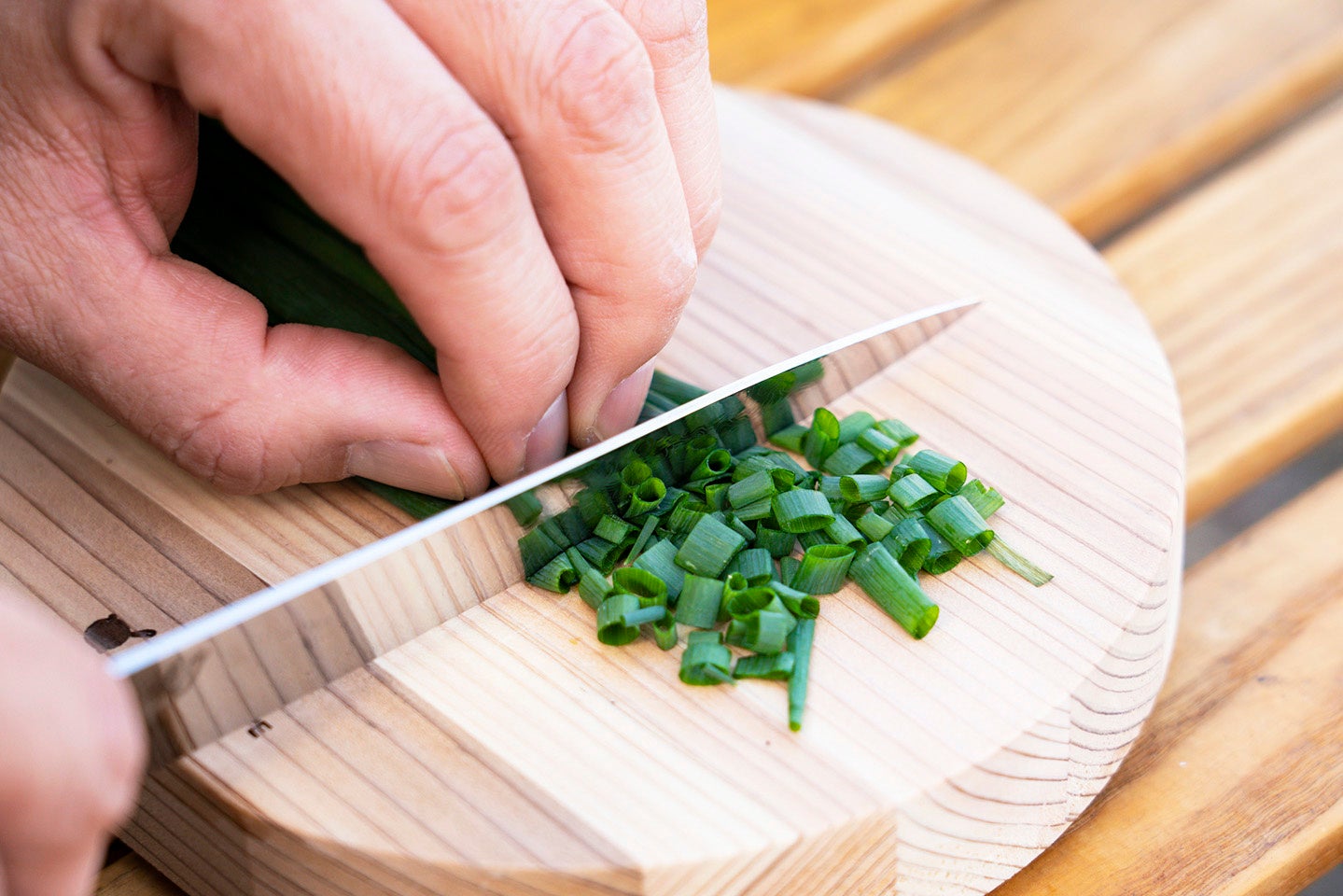 「まな板ヘッド」は、まな板、木蓋、鍋敷き、食器になるコンパクトカッティングボード。料理の最後に添えるネギやレモンなどの「ちょい切り」ニーズに着目し、キャンプシーンの狭くなりがちな作業スペースや、家で少しだけ食材を切りたい時に最適な1枚。自立するため、乾燥も早く、収納もコンパクトになるよう開発いたしました。