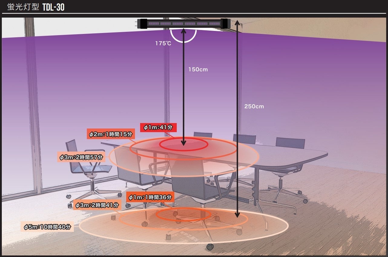 1. 人がいない空間に波長275nmの深紫外線を照射して、光が届く範囲内のウイルスや細菌を除菌します。
