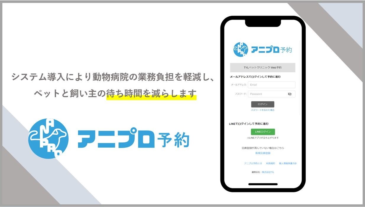 ペットの家族化推進をミッションとし、ペット医療DXをおこなうスタートアップ企業の株式会社TYL(本社:東京都港区 代表取締役:金児 将平、以下TYL)は、動物病院向けの新サービス「アニプロ予約」を提供開始いたします。