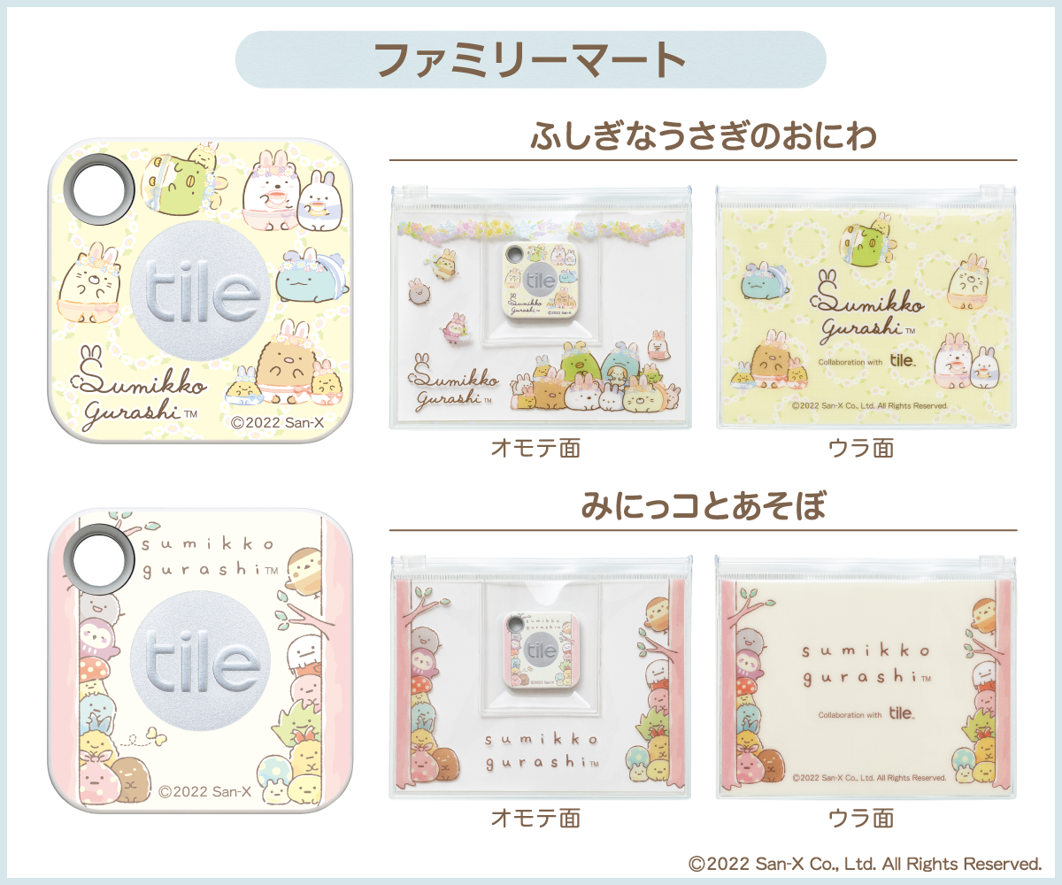 Tileダイレクトストアでは、キャラクターが集合した「スタンダード」デザインをはじめ、人気ストーリーの「とかげの夢」、「みにっコとあそぼ」がプリントされた「Tile」を共通デザインパッケージにて2,882円(税込)で販売。ファミリーマートでは、Tileダイレクトストアとはデザイン違いの「ふしぎなうさぎのおにわ」と「みにっコとあそぼ」のストーリーがプリントされた「Tile」がファミリーマート限定デザインのパッケージに入って2,882円(税込)にて販売します。