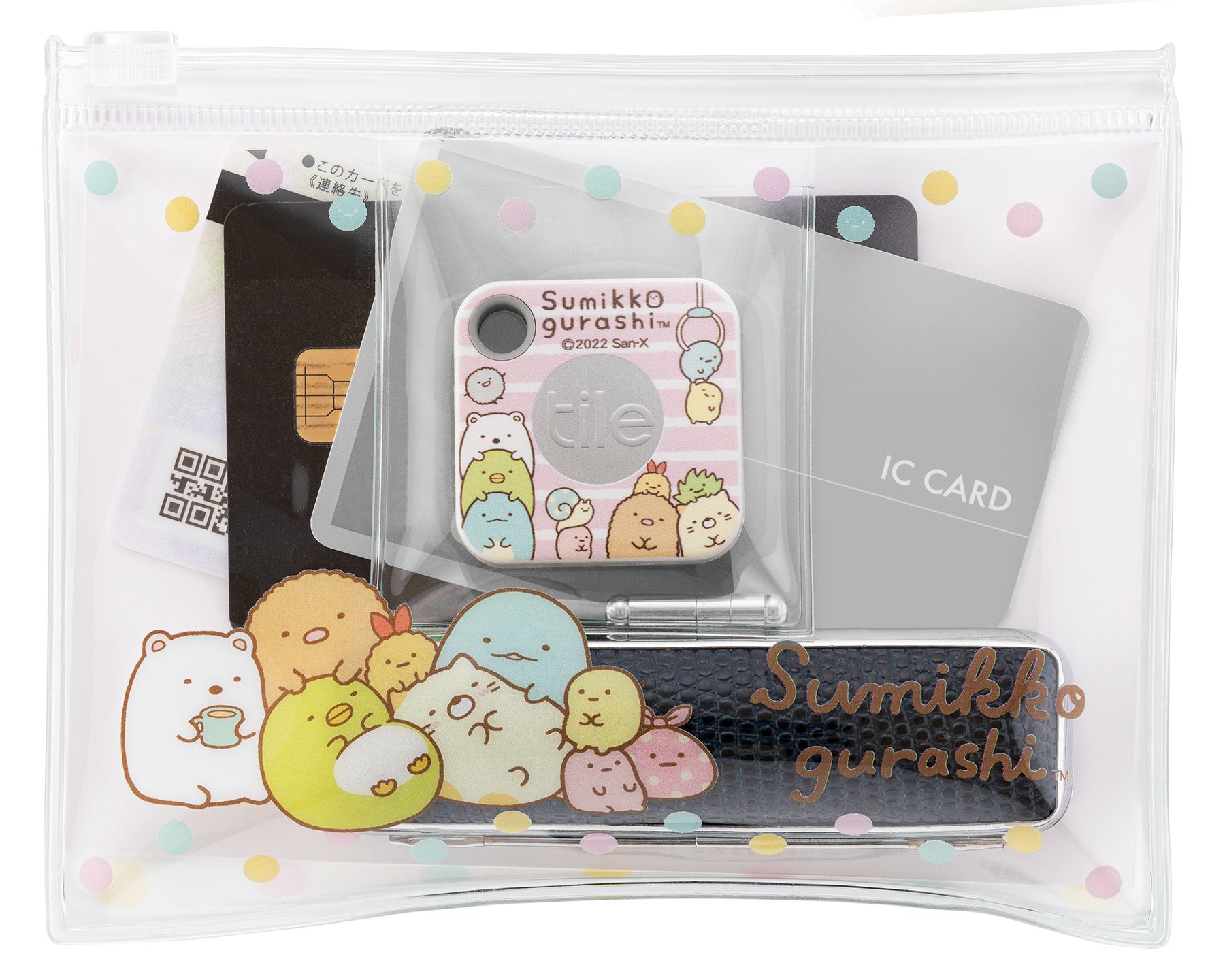 可愛らしいデザインでキーホルダーとして楽しめるだけでなく、屋内外、よく“すみっこ”に隠れてしまう鍵や小物を「Tile」のファインディング技術と音で簡単に探し出すことができます。さらに、オリジナルデザインのパッケージは、Tileポケットを備えたビニールスライドポーチになっているため、ICカードや保険証といったカード類、印鑑や小銭など、Tileを取り付けることができない大切な小物を入れて使用することができます。開封後にポーチとしてリユースでき、ゴミを減らすことに繋がるエコなパッケージになっています。可愛らしくも実用的な「すみっコぐらし デザインTile」に是非、ご注目ください。