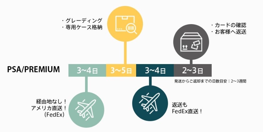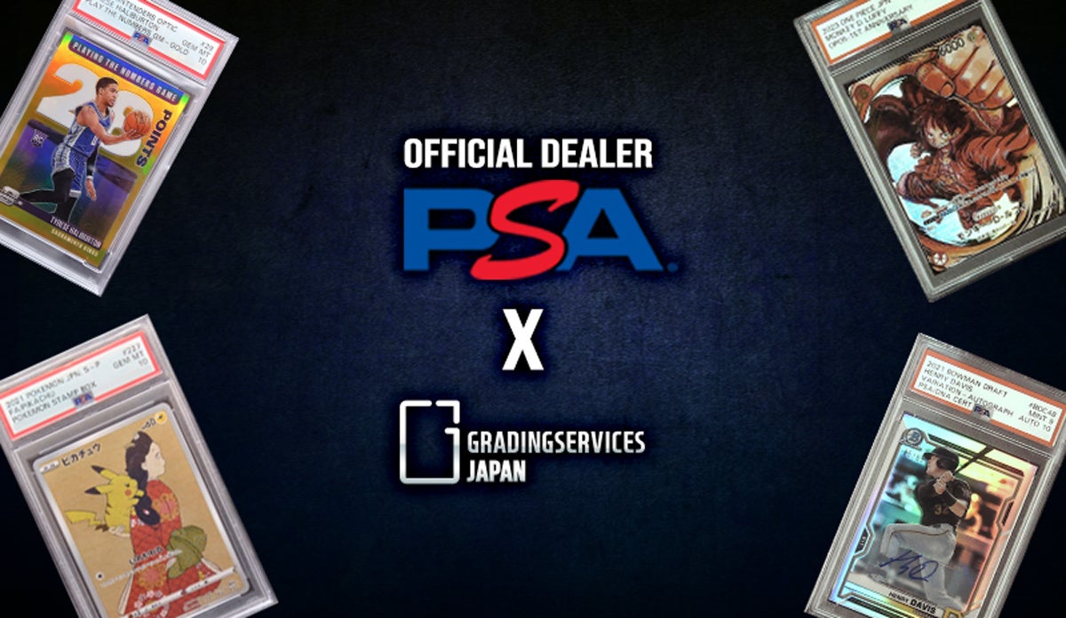 サービス開始当初からPSA社の鑑定代行サービスを行っておりました「Grading Services Japan( https://gradingservices.jp/ )」は、サービスを拡大するにあたりPSAの正規ディーラーとして業務提携を実現しました。近年のトレーディングカード人気により、トレーディングカードゲームの提出数が着実に増加しております。申込みから返送まで安心してご利用いただけるサービスを提供いたします。