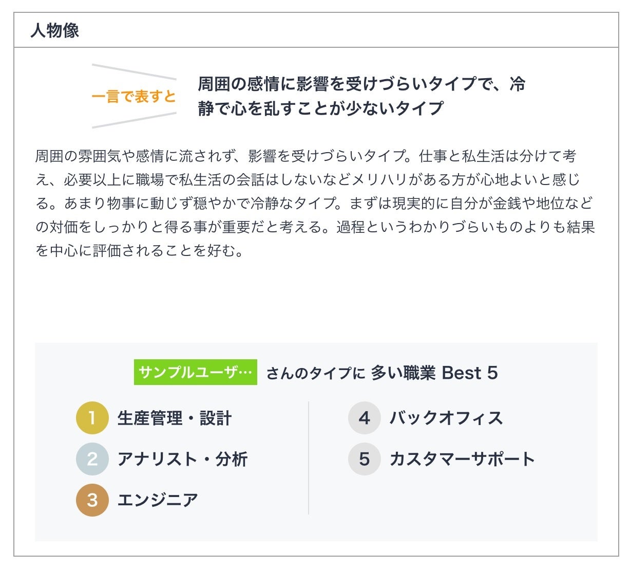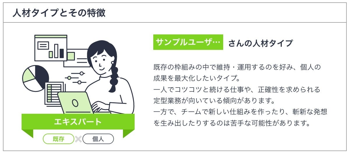 - 分析結果をフィードバックすることで、自身の強み・弱みを自己分析・理解し、仕事や職場での関係構築に活かす