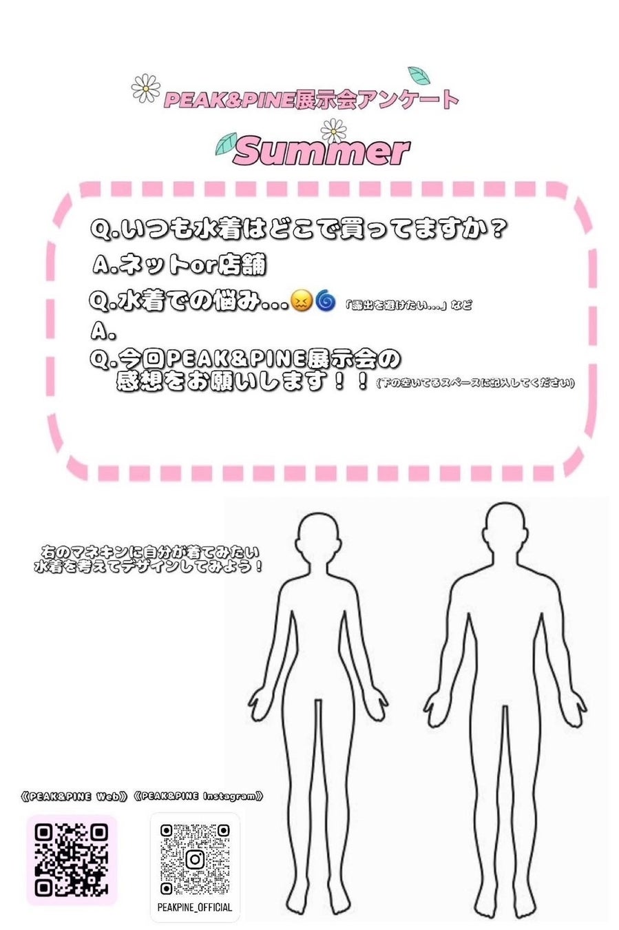 PEAK&PINEさんとの合同展示会で多くを学びました。マネキン(全身人形)とトルソー(胴体部分のみ)の違いも、この展示会で初めて知りました。告知画像を作る際に、正式なロゴマークを使用することや、展示する水着の数を配置図に基づいて決めることの重要性を学びました。