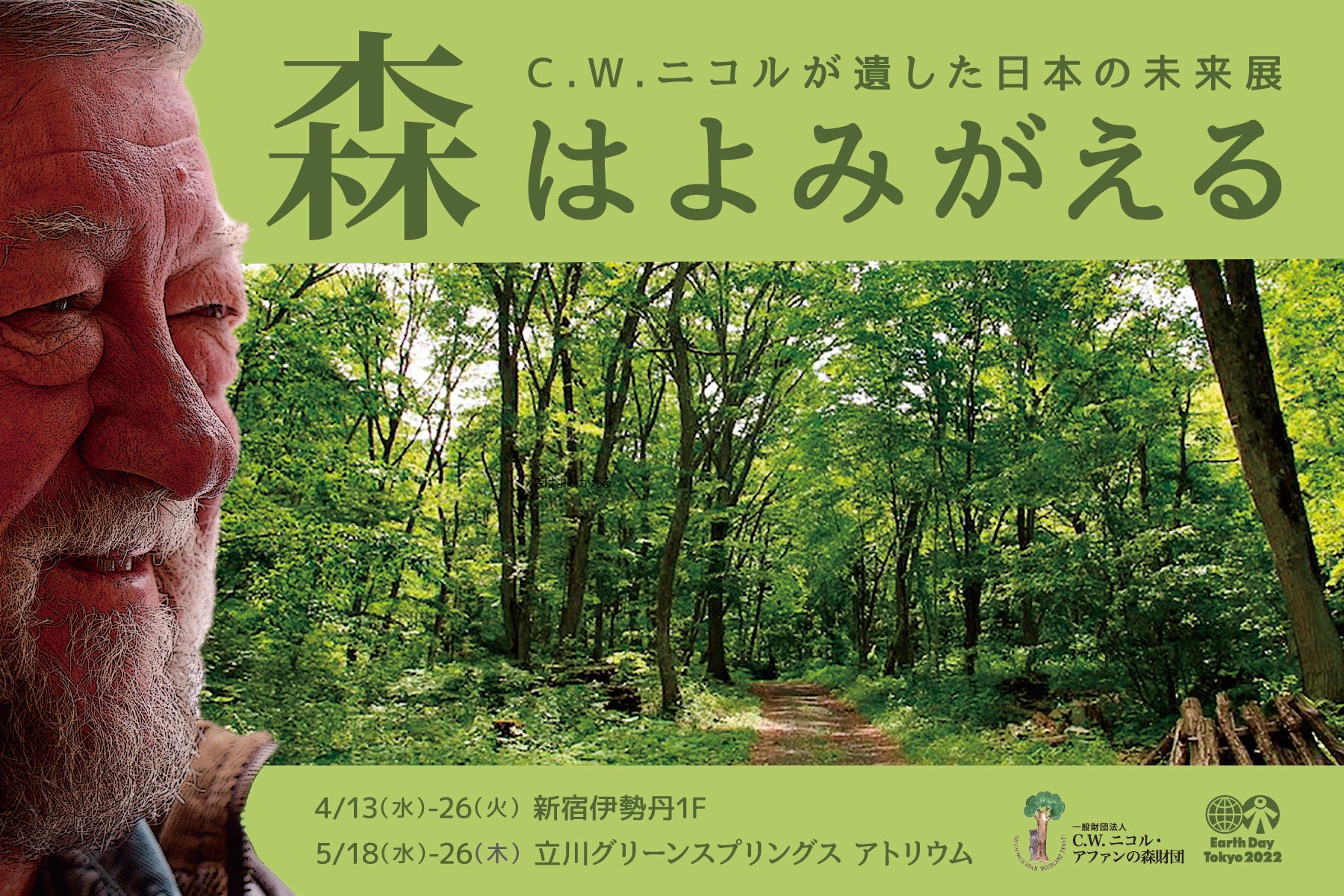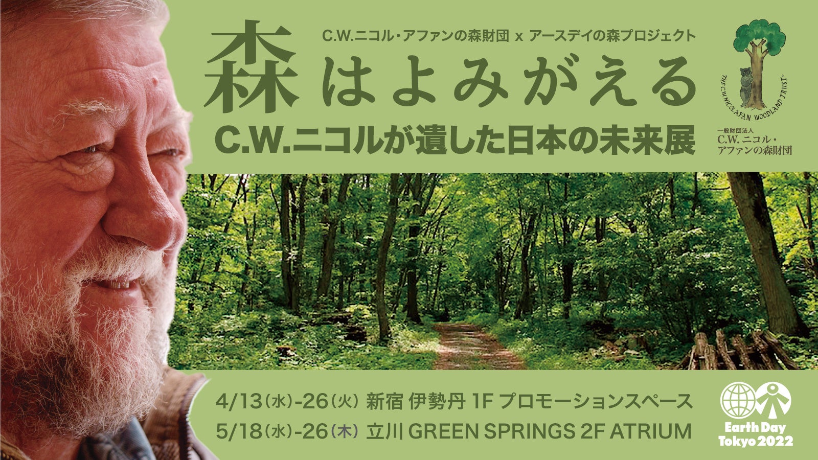 アースデイ東京2022実行委員会であるアースデイの森プロジェクト実行委員会(事務局:株式会社MOTHEREARTH)と一般財団法人C.W.ニコル・アファンの森財団は、4月のアースディ期間に伊勢丹新宿店、5月の生物多様性の期間に、GREEN SPRINGSで、『森はよみがえる』C.W.ニコルが遺した日本の未来展を開催します。