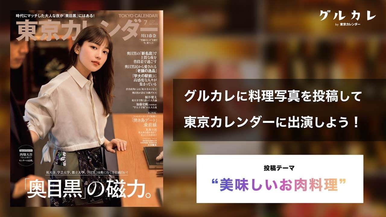- あなたの投稿を東京カレンダーでご紹介!グルカレで『美味しいお肉料理』のグルメ画像を投稿をして、東京カレンダーに出演しよう!