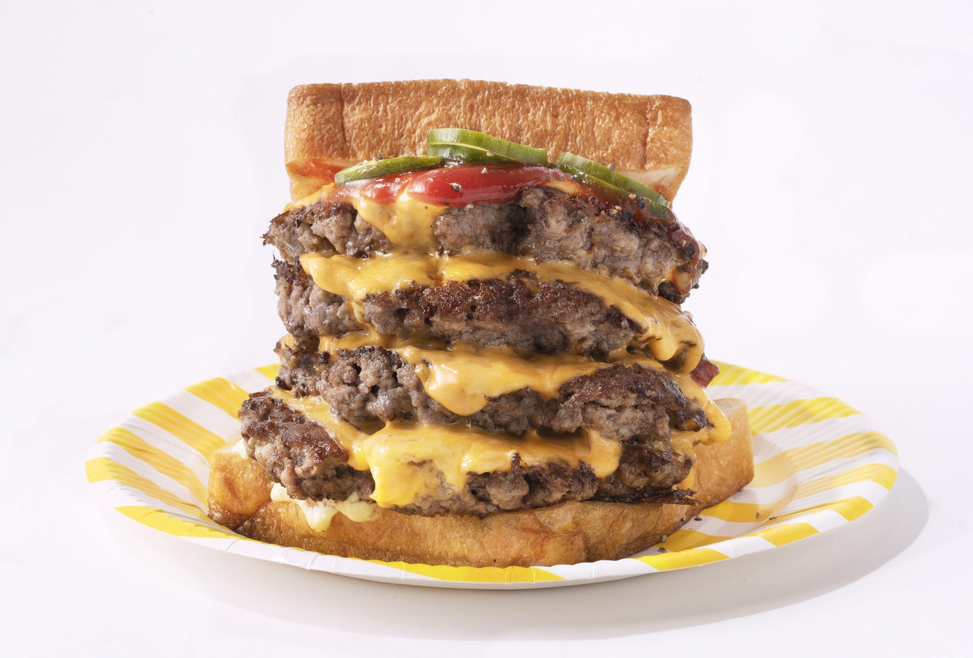 世界でも極めて珍しい「100%手づくり」のクラフトハンバーガー。牛肉100%のスマッシュパティ(4枚)は、総重量ワンパウンドの大迫力。フレッシュな挽肉をお店で手ごね成形し、ご注文ごとに鉄板に押し付けて焼成するため、一切作り置きなしの熱々肉汁をお楽しみいただけます。