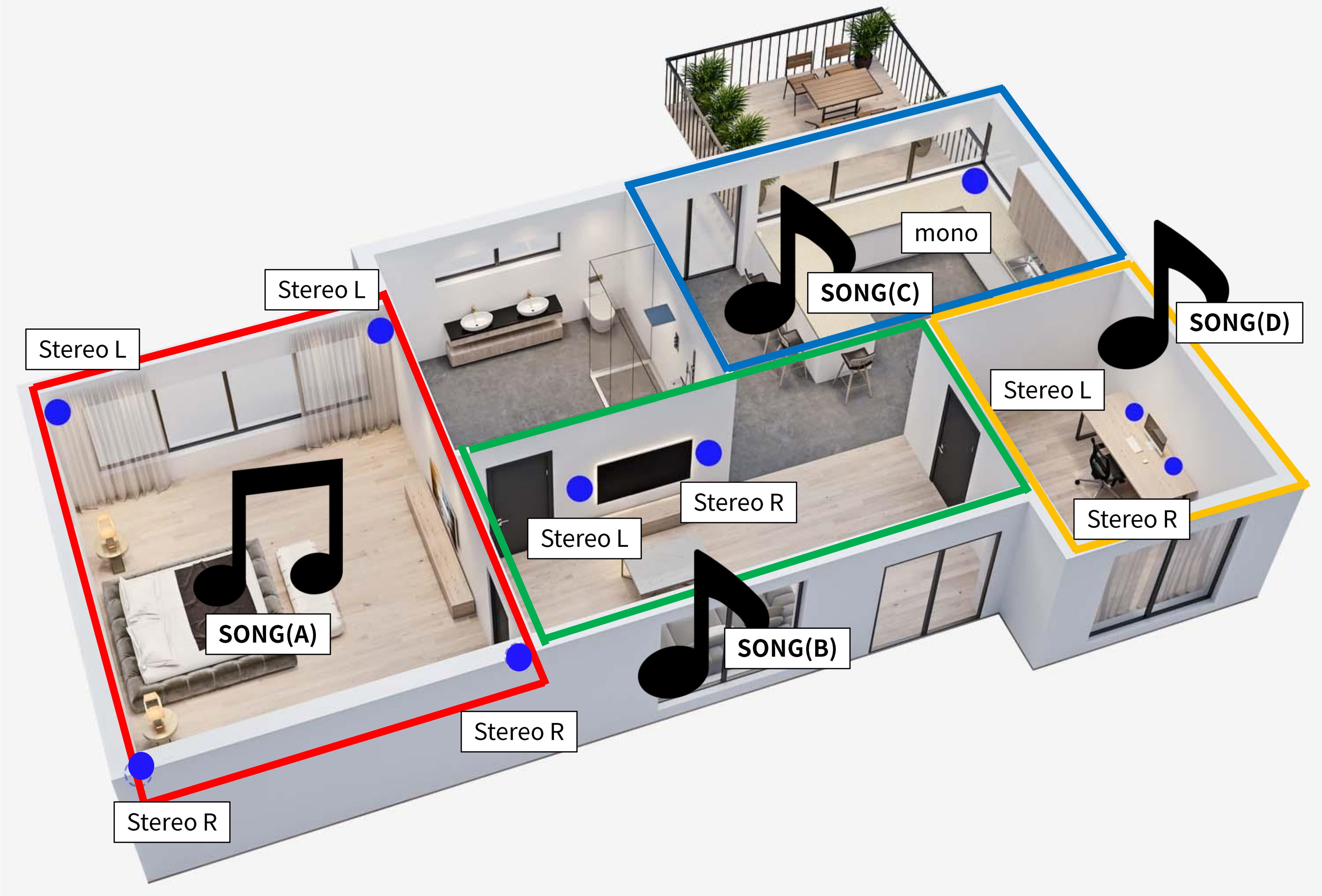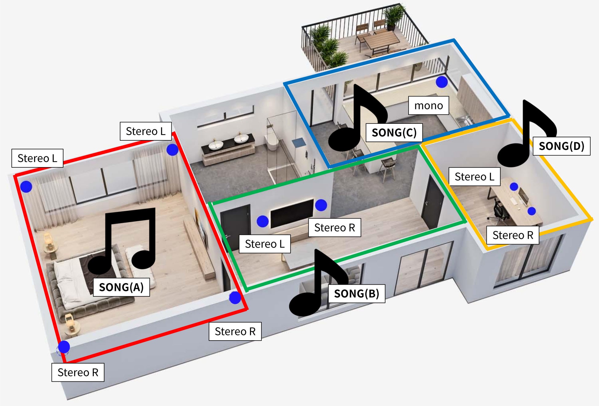 また、複数のdefunc HOMEがあれば複数台でグループ化することもできるので、リビングは4台、寝室は2台、などの使い方もできます。