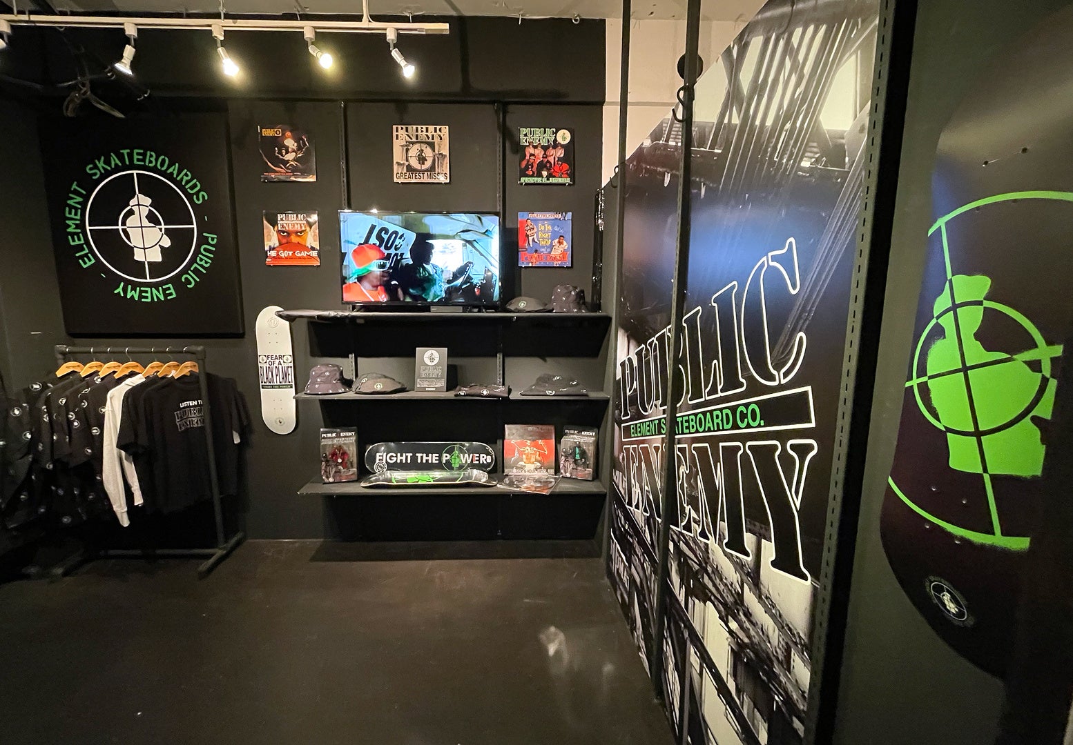 PUBLIC ENEMY x ELEMENT SKATEBOARDSのコラボレーション展開に合わせて、3月30日(水)より、STORMY(ストーミー)原宿店にてポップアップストアが期間限定で出現。本コラボレーションの豊富なアイテムラインナップに加え、レコードやフィギュアなどのレアな展示品を見ることができる他、PUBLIC ENEMYの貴重なミュージックビデオが店内のスピーカーから大音量で楽しめる仕掛けも。この機会にぜひご来場ください。
