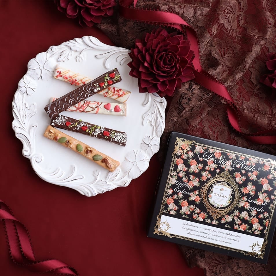 毎年ご好評をいただいている「CAFE OHZAN」のギフトから、バレンタイン・数量限定のスティックラスクが登場。ブラックベースのクラシカルなデザインはブランドならではの高級感のあるバレンタインを演出しており、「今年だけ」の特別感が詰まったスイーツとしておすすめのギフトです。食べやすく・分けやすい個包装のラスクはそれぞれ異なるコーティングが施されており、食べやすさや分けやすさに加え、選ぶ楽しみを与えてくれます。