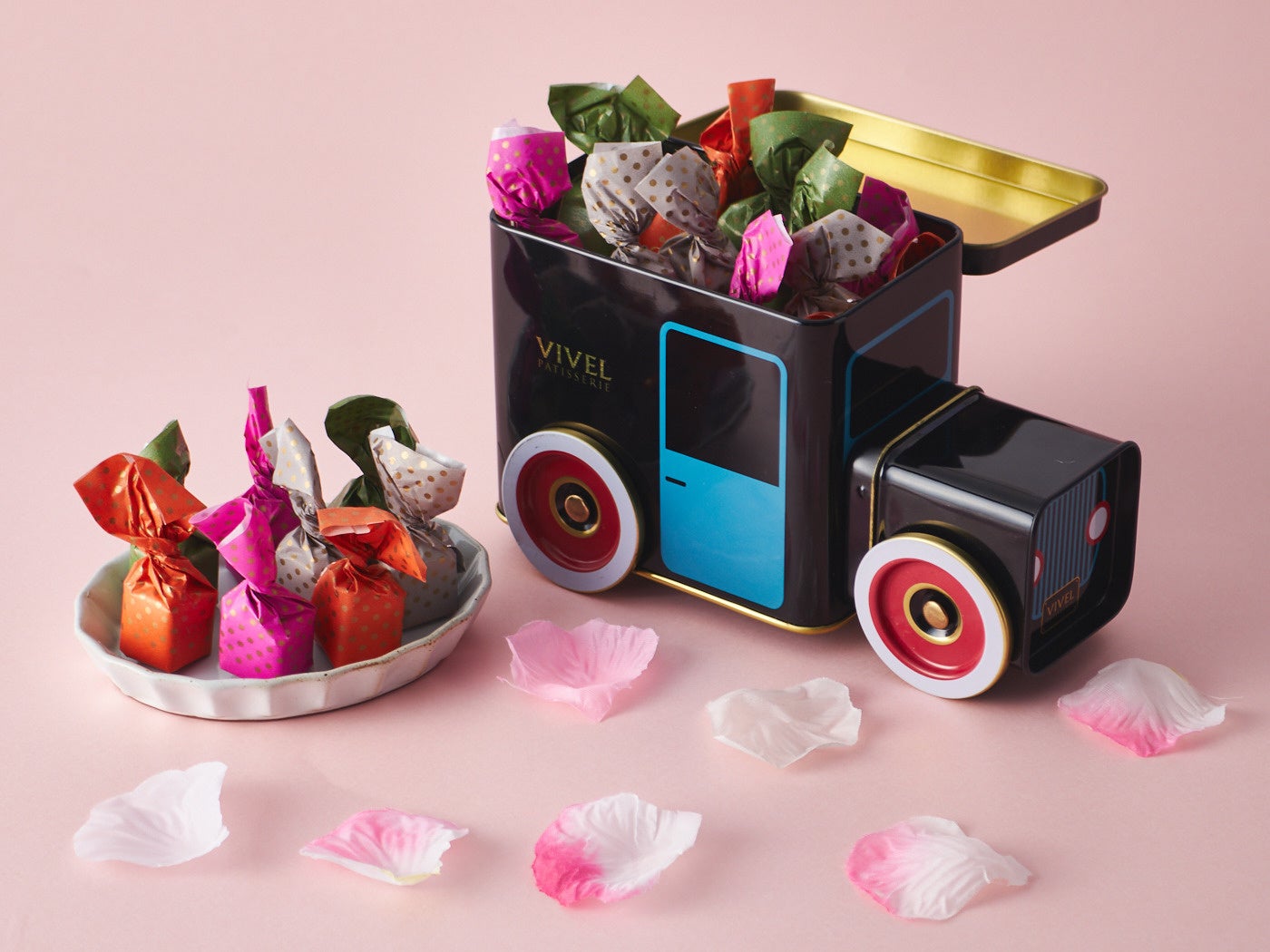1992年にUAEのドバイで1号店を開店後、王族の結婚式やパーティーにも使用され、現在UAE国内の5〜7星ホテルでも使用されている「VIVEL PATISSERIE」。4種のトリュフチョコレートが詰め込まれているおもちゃの車缶は、食べ終わった後もおしゃれな小物入れとしてご使用いただけます。個包装されたトリュフチョコレートは、分け合うだけでなく、少しづつ味わう「セルフラブチョコ」としてご自身へのご褒美にもぴったりです。