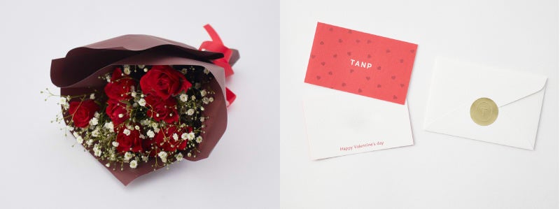 TANPでは、商品と合わせてご購入いただける様々なオプションサービスをご提供しております。ご自宅に居ながら豊富なラッピング、メッセージカードの同梱、お花の同梱、名入れサービス等をご利用いただくことができますので、是非「eギフト(前述)」とも合わせてご活用ください。なお、現在一部商品にてバレンタイン向けオプション(画像参照)も展開しております。