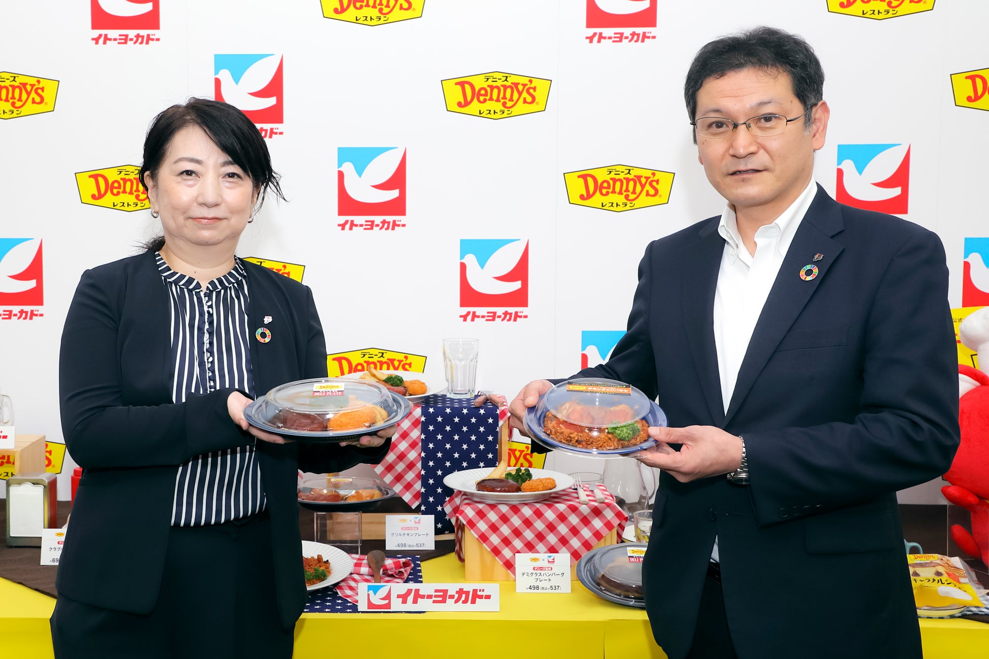 続いて、株式会社セブン&アイ・フードシステムズ 外販事業推進部 部長 堀川淳子も登壇し、山田総括マネジャーと一緒に、デニーズ監修商品について、一品ずつご説明いたしました。