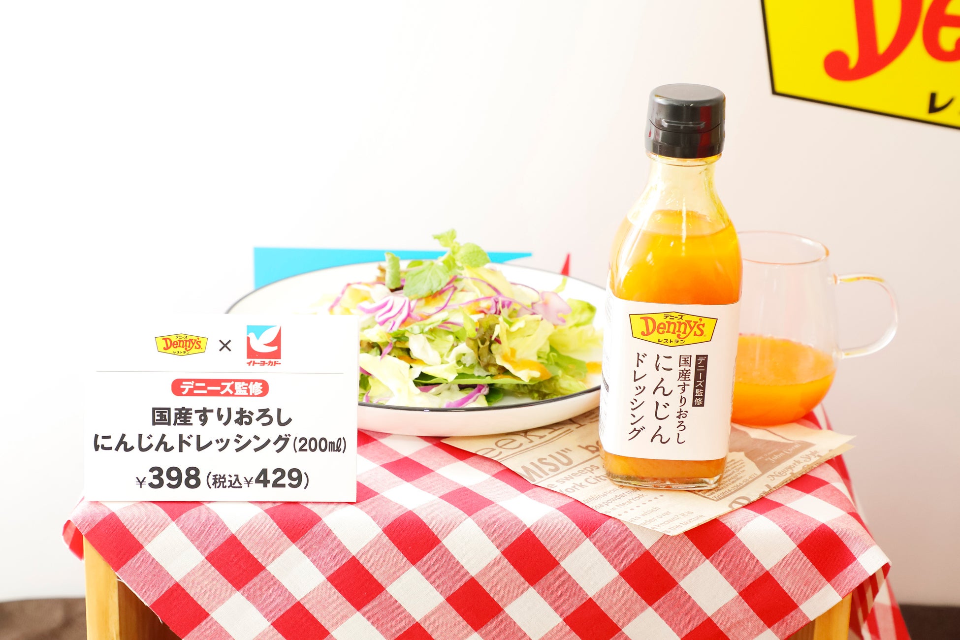 四品目の「デニーズ監修 国産すりおろしにんじんドレッシング200ml」は、「グリーンサラダや生ハムとの相性が抜群」という商品紹介の後、堀川部長から「デニーズでは、ドレッシングの在り方について、野菜のうまみを引き立てるということを目指しているが、こちらの商品は、見事に私たちの目指すドレッシングに仕上がっている」とお話しいたしました。