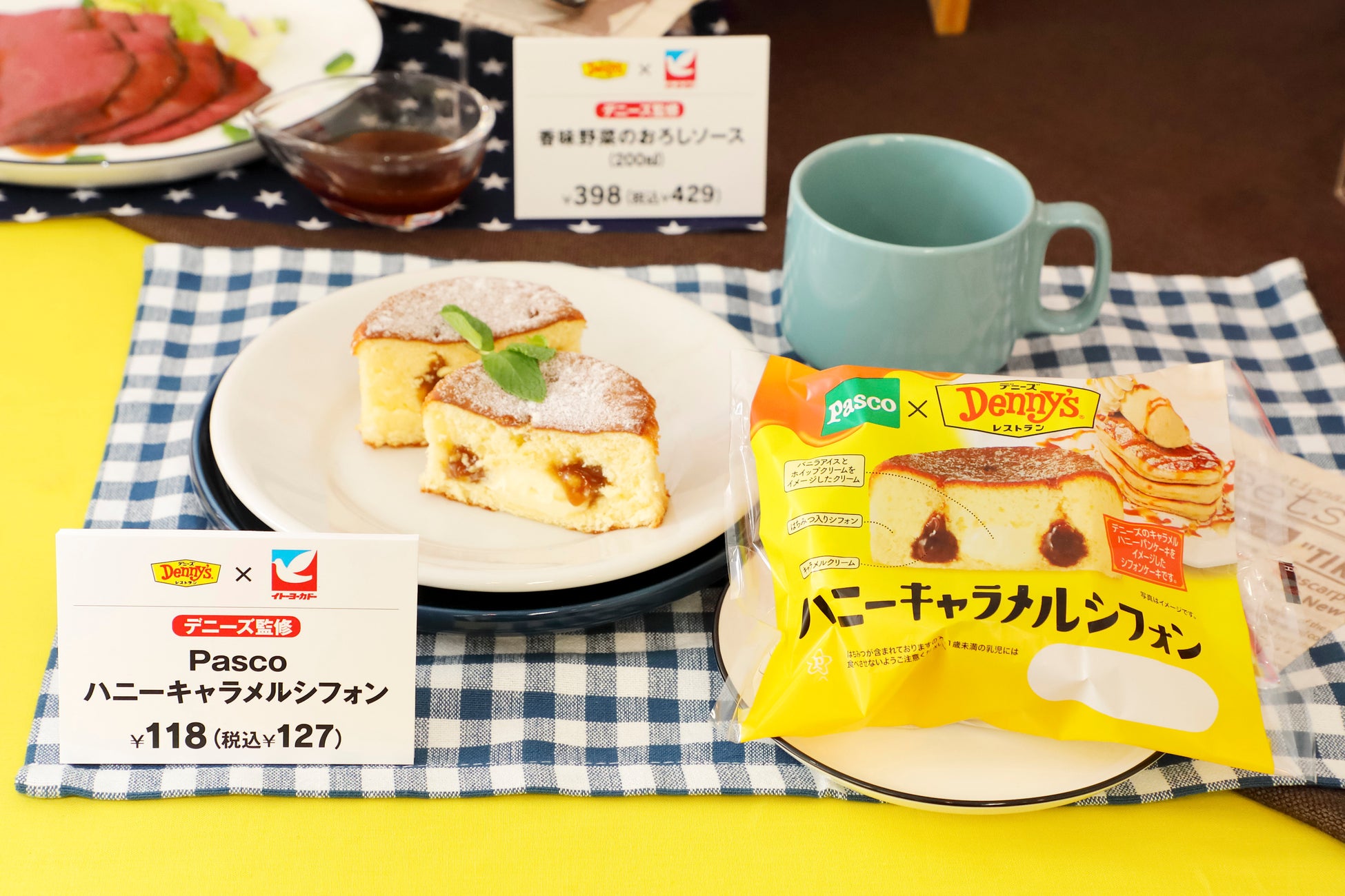 また、三品目の「デニーズ監修 Pasco ハニーキャラメルシフォン」については、デニーズでは「キャラメルハニーパンケーキ」として提供されているものを、今回の商品化では、パンで表現したという点と、はちみつを混ぜ込んだしっとりとしたシフォン生地で、パンケーキの味を再現した」というお話をいたしました。