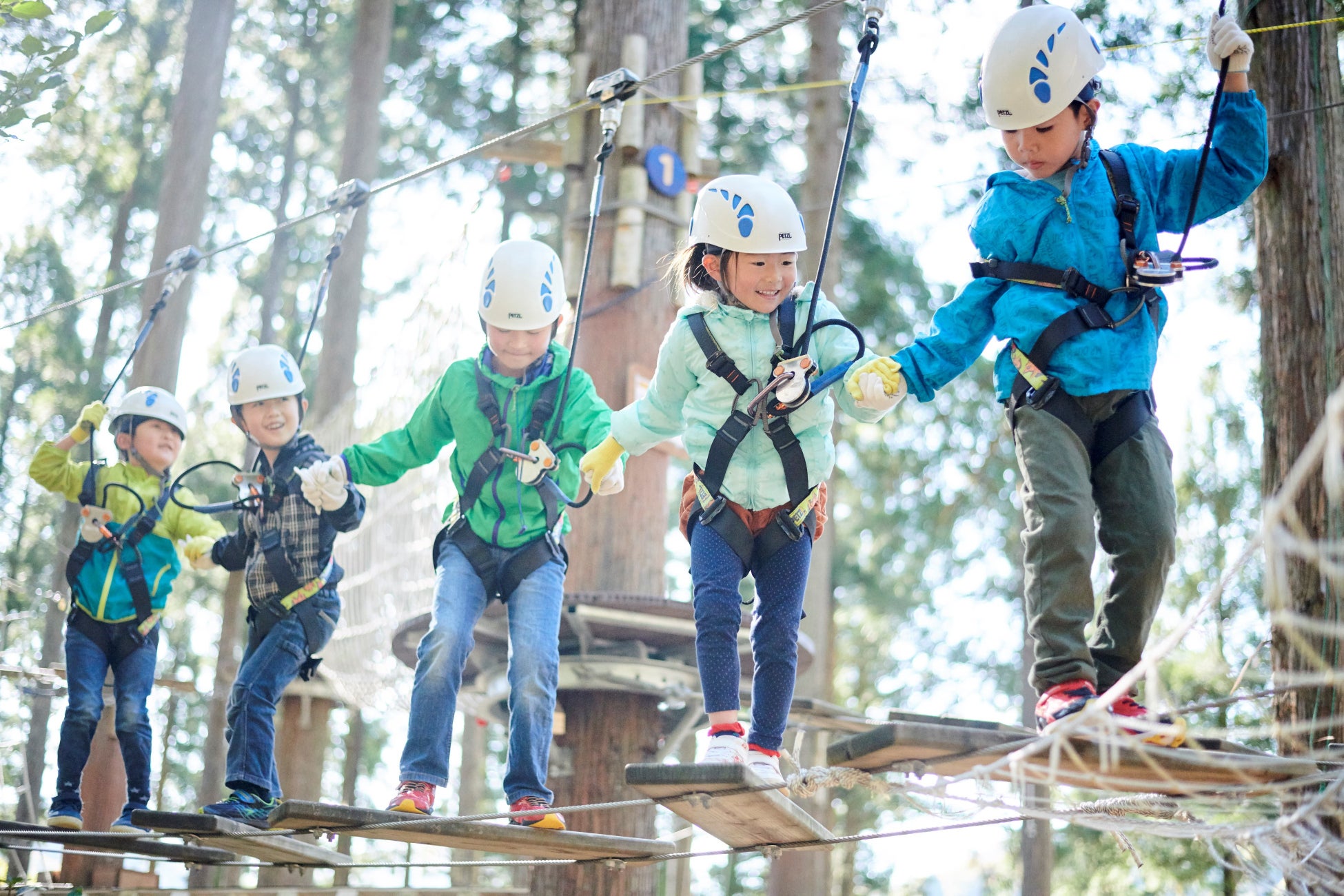 「ジュニアディスカバリーコース」は既存の「ディスカバリーコース」と「キッズコース」の中間を想定したコース。「ディスカバリーコース」と同じ安全装備を着用・操作し、成長過程のお子様たちに本格的なアスレチックのエントリーコースに挑戦していただきます。
