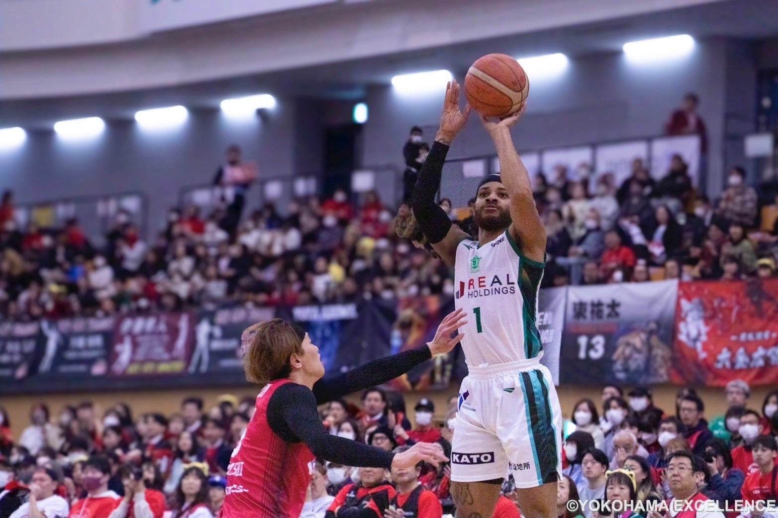 その後は横浜EXがリードをしても八王子が追いつく展開が続きます。そして試合時間残り30秒時点で再度同点に追いつかれ、逆転の雰囲気が生まれる中、試合時間残り12秒。「#1 トレイ・ボイドIII」がこの日32得点目となる3Pシュートを沈め、直後の守備でも「#16 ソウシェリフ」がスティールでボールを奪うと「#22 エライジャ・ウィリアムス」が豪快なダンク!