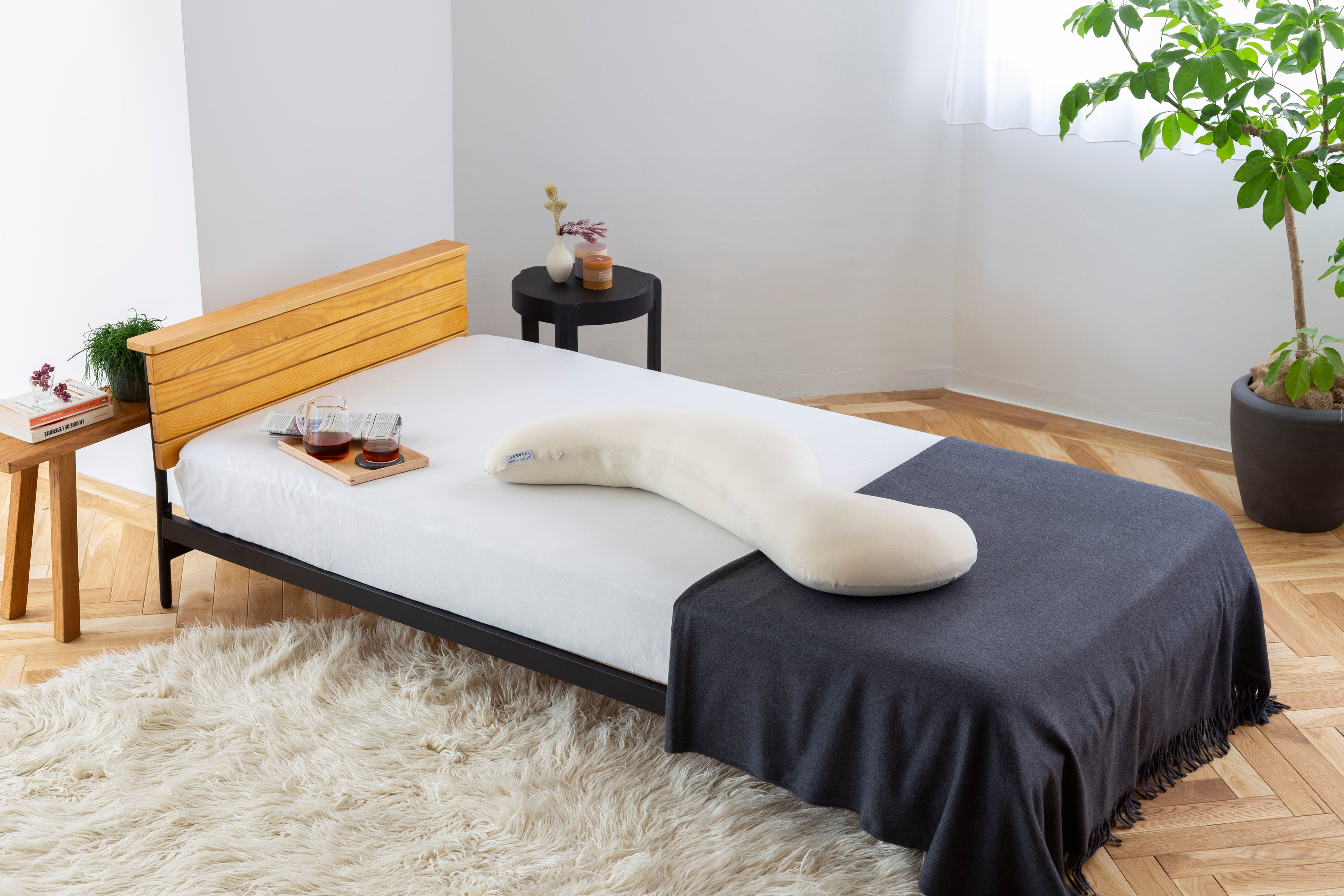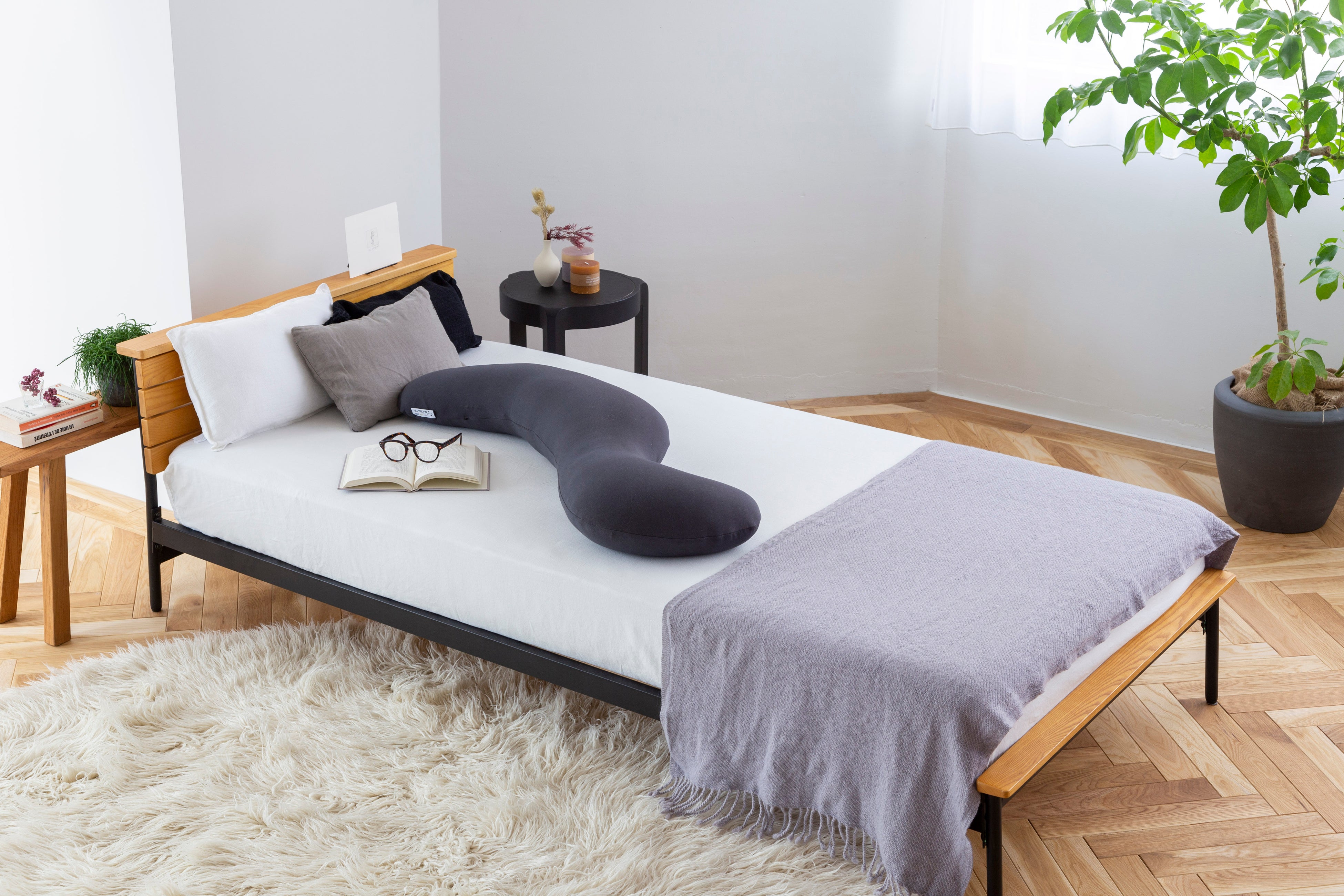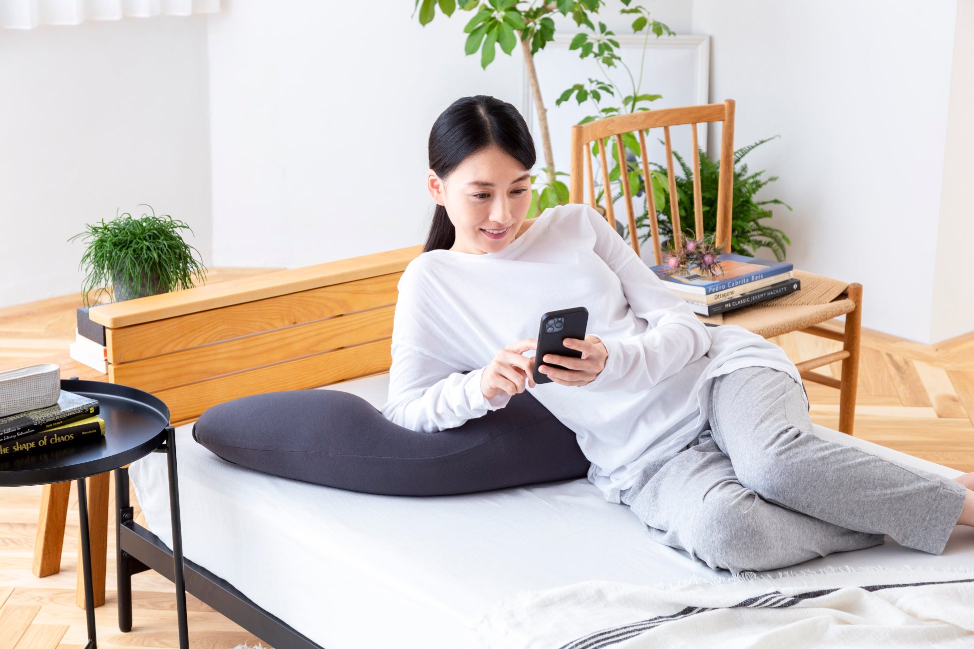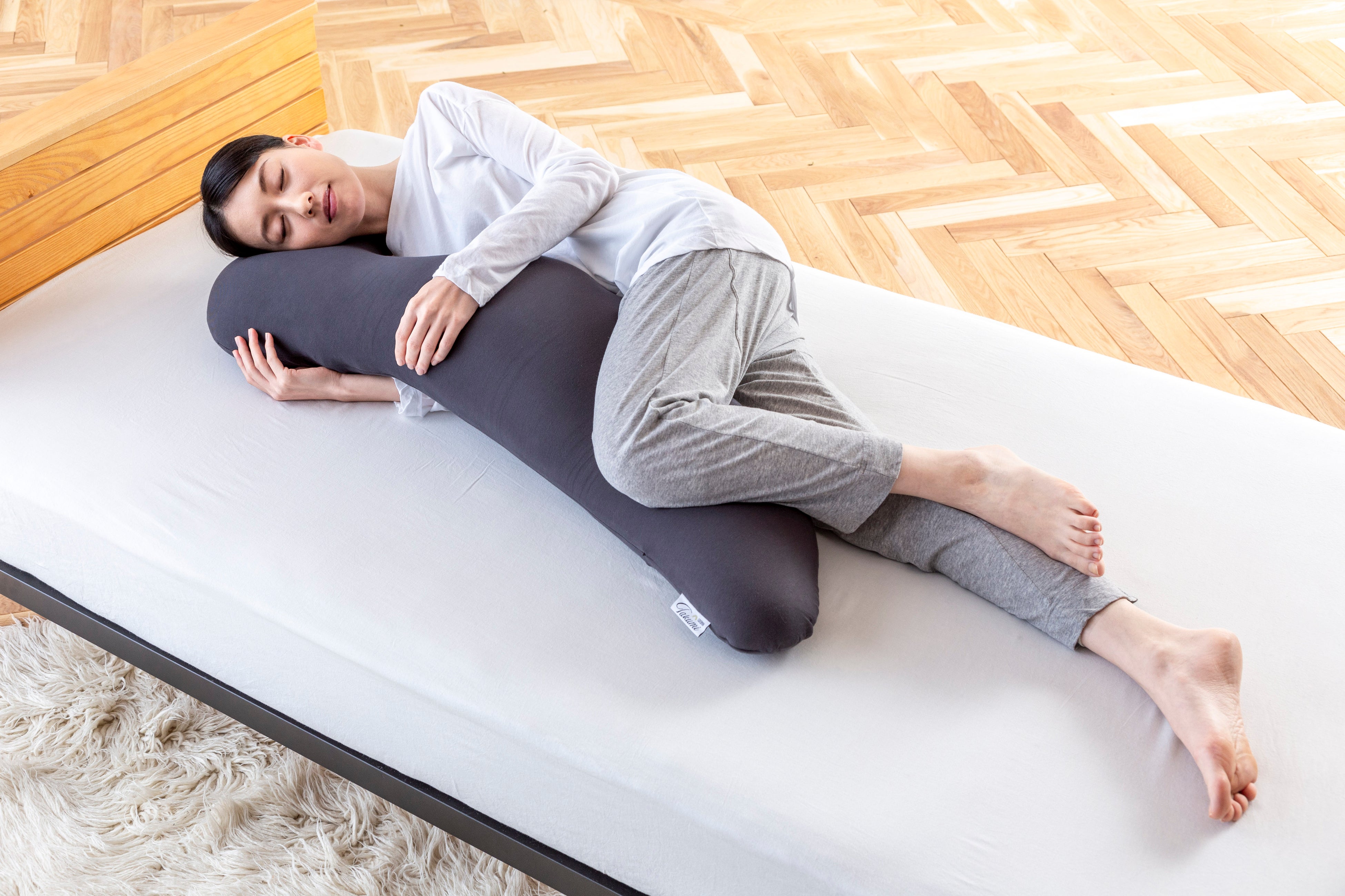 1.体を支える心地よいフィット感を追求した流線型のオリジナル形状は、適度な柔らかさと安定感で、横向きやシムス姿勢など、さまざまな姿勢をやさしくサポートします。抱きしめることで体圧は分散され、身体への負担を軽減、睡眠時以外にもリラックスタイムのお供としてもお使いいただけます。