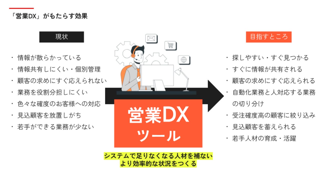 10人で行っていた業務を6人でこなさなければならないほどの人財不足に多くの企業が直面しています。しかし、営業のデジタル化を進めようとしても、ツールの使いこなしや導入手順がわからず、アナログ手法を続ける企業が多いのが現状です。景気や人材など外部環境の変化において対応し、企業が成長・維持し続けていくためには自社にあった「営業DX」が必要です。