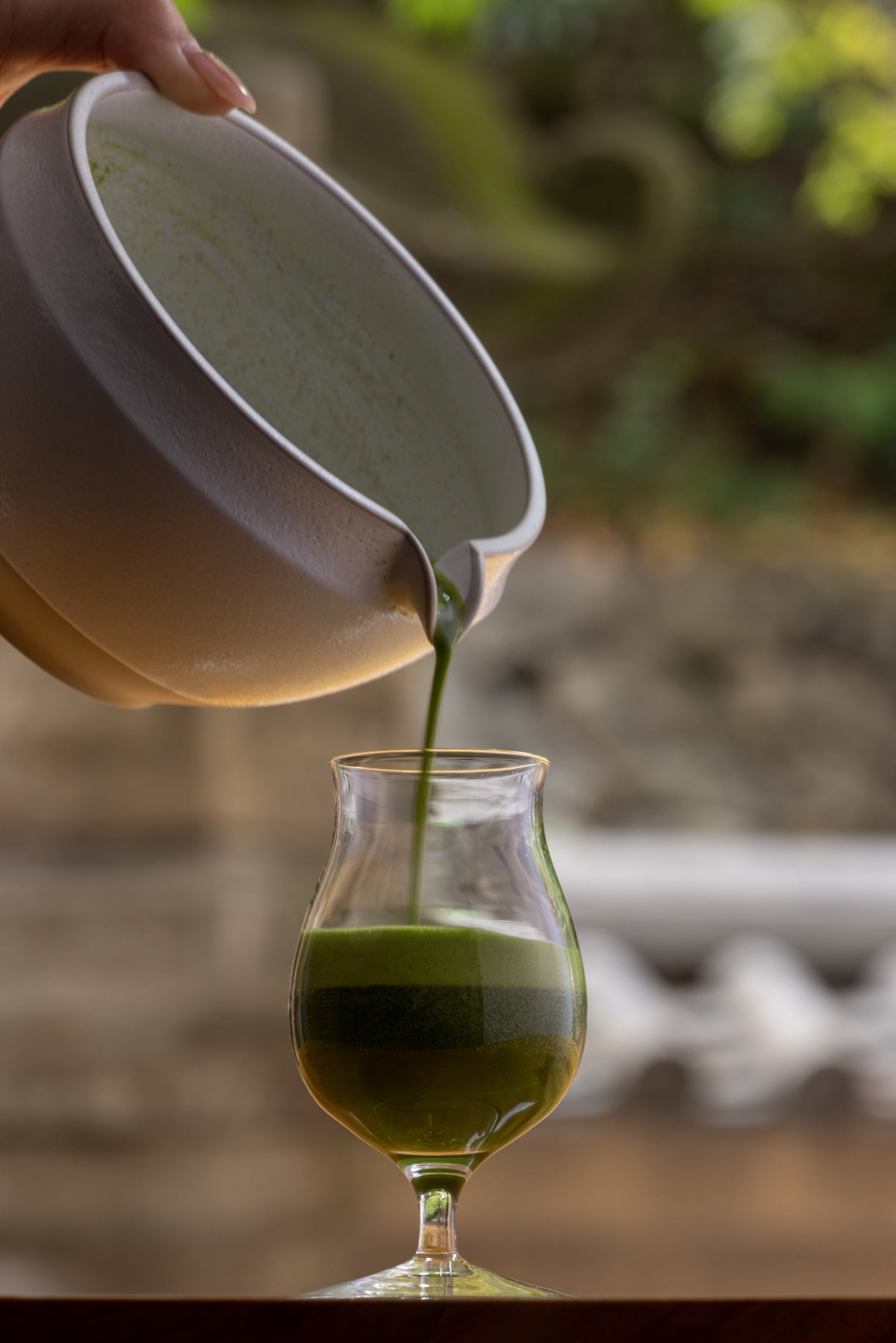 ドリンクも引き続き京都の老舗日本茶専門店 一保堂茶舗のお茶をご用意し、お食事・スイーツに合わせてリニューアルします。スタートは抹茶を冷たい炭酸水で点てた「抹茶スパークリング」。 茶筌で点てると香りがなじみ、炭酸がはじけるたびに上品な抹茶の風味の広がりをお楽しみください。また、最後の甘味の栗どら焼きには一保堂茶舗が新たに発売した和紅茶を合わせます。