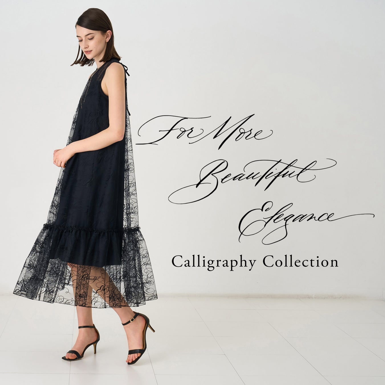 デザインアートとしてテキスタイルに落とし込みました。伸びやかなカリグラフィーに彩られた新しいコレクションはどれも繊細でエレガントな印象を与えます。