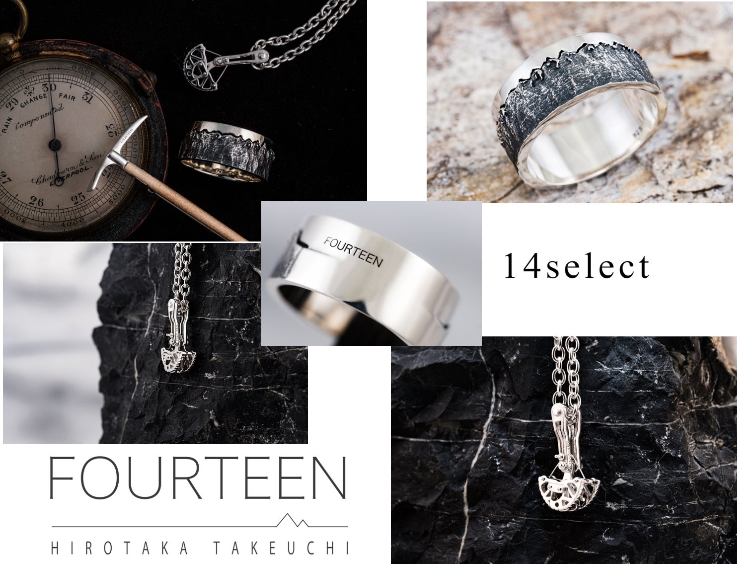 「FOURTEEN – HIROTAKA TAKEUCHI」からセカンドモデルとして、雄大なヒマラヤの山並みと、宇宙に続く空をモチーフにしたリング『HIMALAYA RIDGE (ヒマラヤリッジリング)』と、クライマーズスピリッツのシンボルでもあるカミングデバイスをモチーフにしたペンダント『MATE (メイト)』の2点を新たに発表。