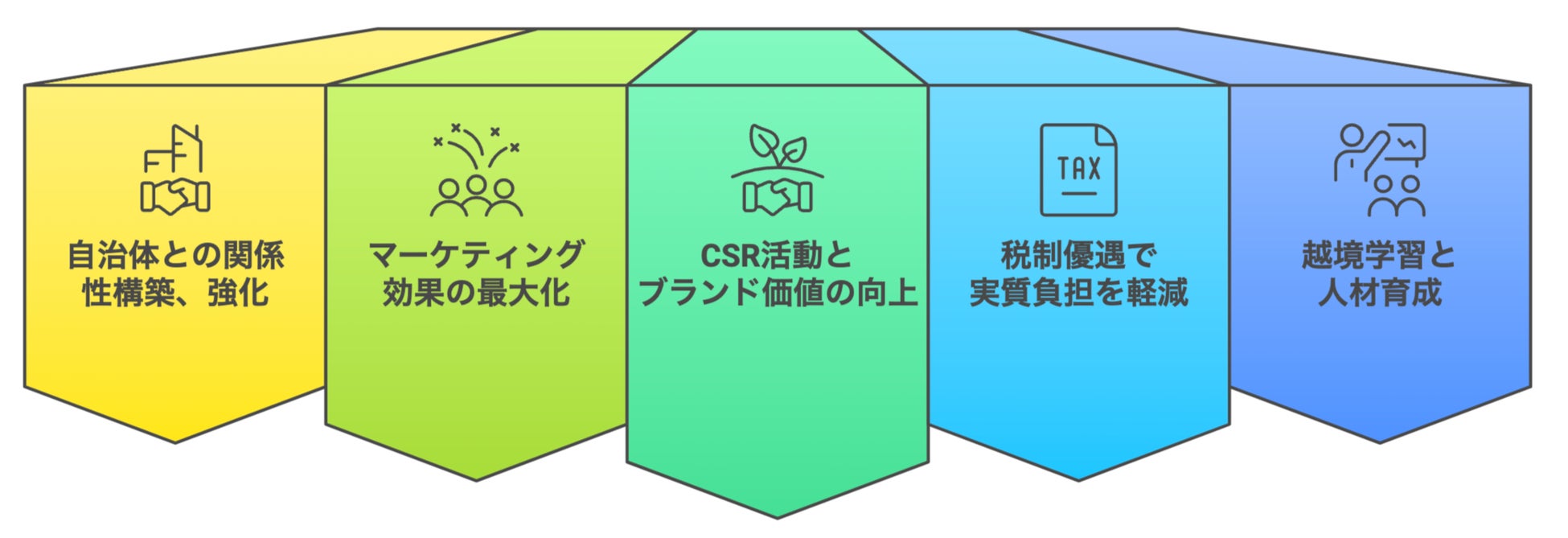企業は寄附を通じて自治体との強力なパートナーシップを築き、地域内での新規ビジネス展開の基盤を整えられます。 -
