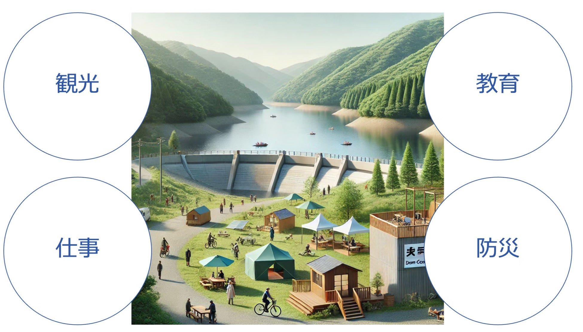 ダム(およびダムのある中山間地域)は利水や防災機能などだけでなく、観光・教育・ワークスペース・新規事業創造のフィールドとしての可能性を秘めています。