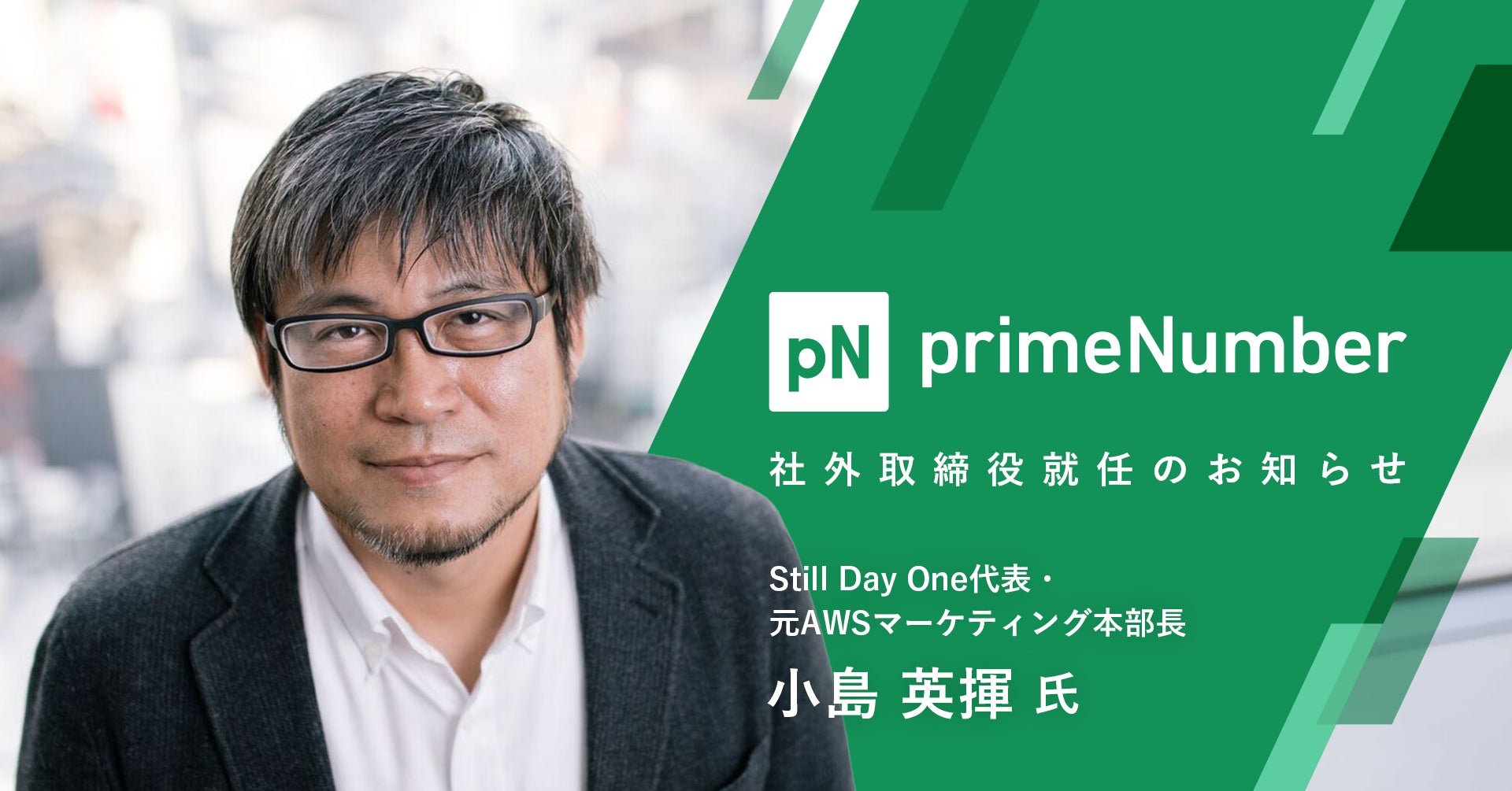 株式会社primeNumber(本社:東京都目黒区、代表取締役CEO:田邊 雄樹)は、社外取締役にStill Day One合同会社(本社:神奈川県横浜市)代表、元アマゾン ウェブ サービス ジャパン(AWS)合同会社マーケティング本部長の小島英揮氏が就任したことをお知らせいたします。